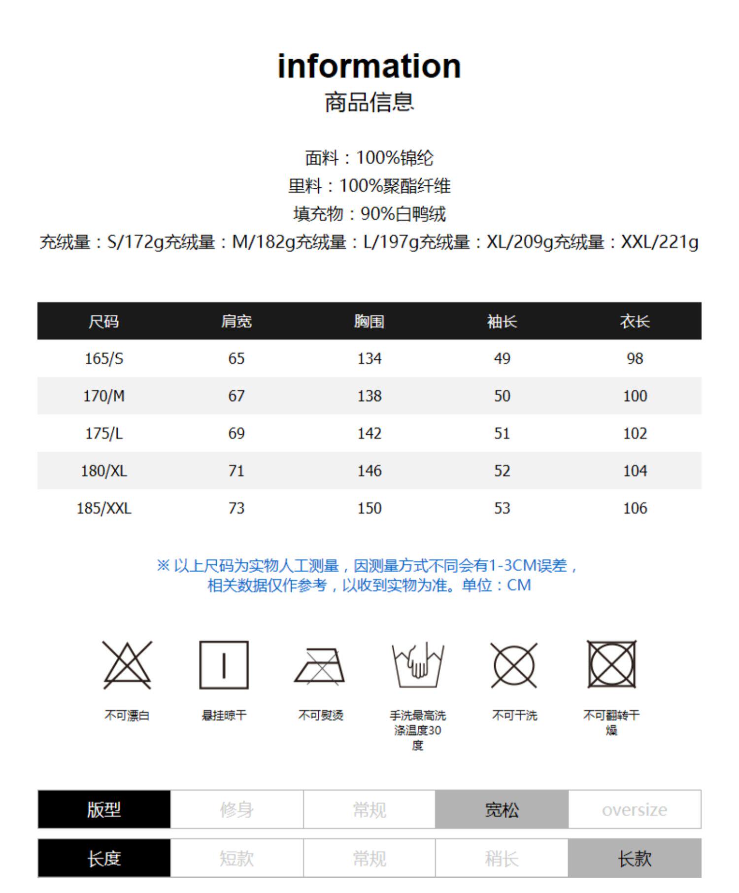 - = 185/XXL 175/L 180/XL