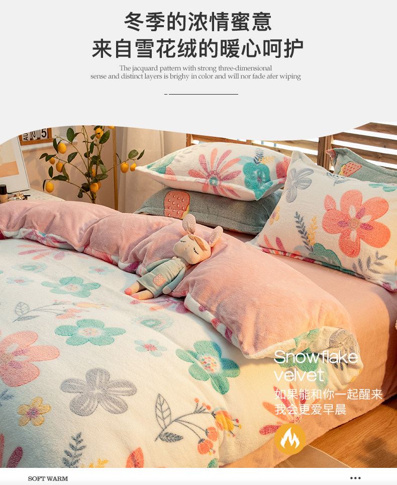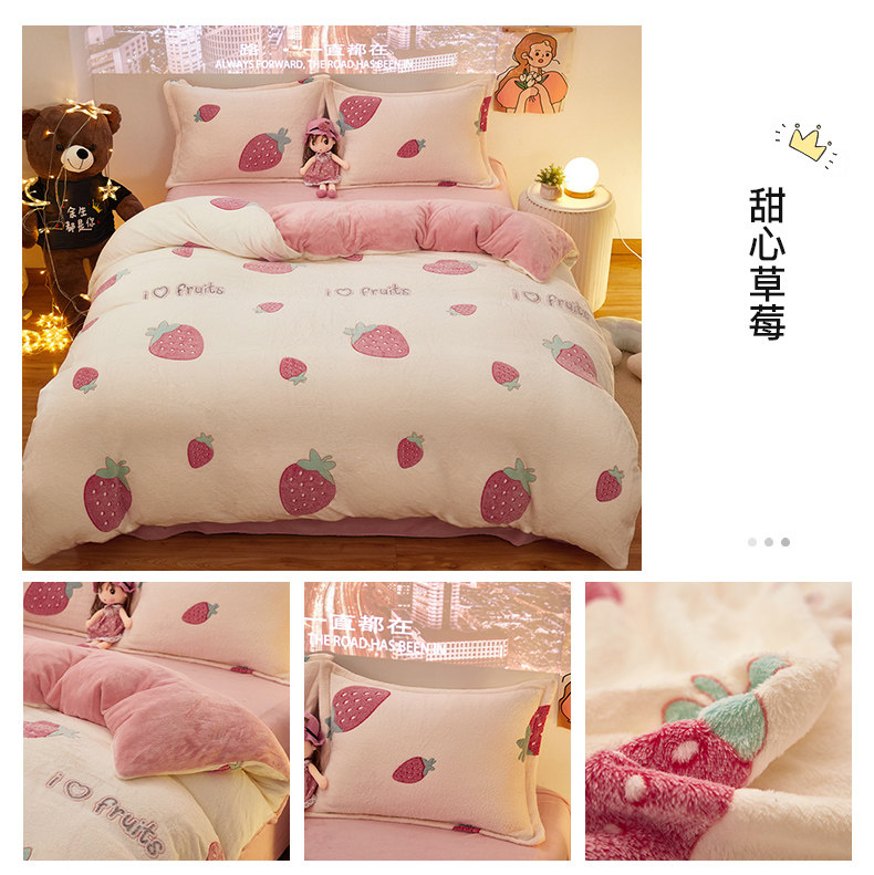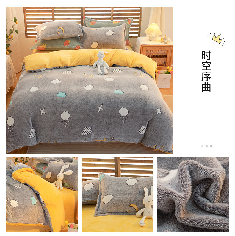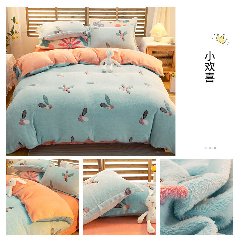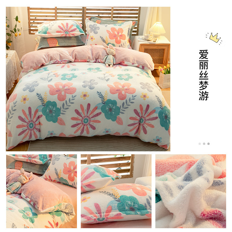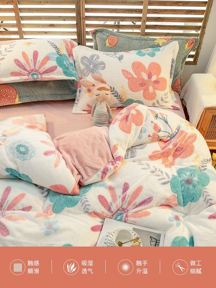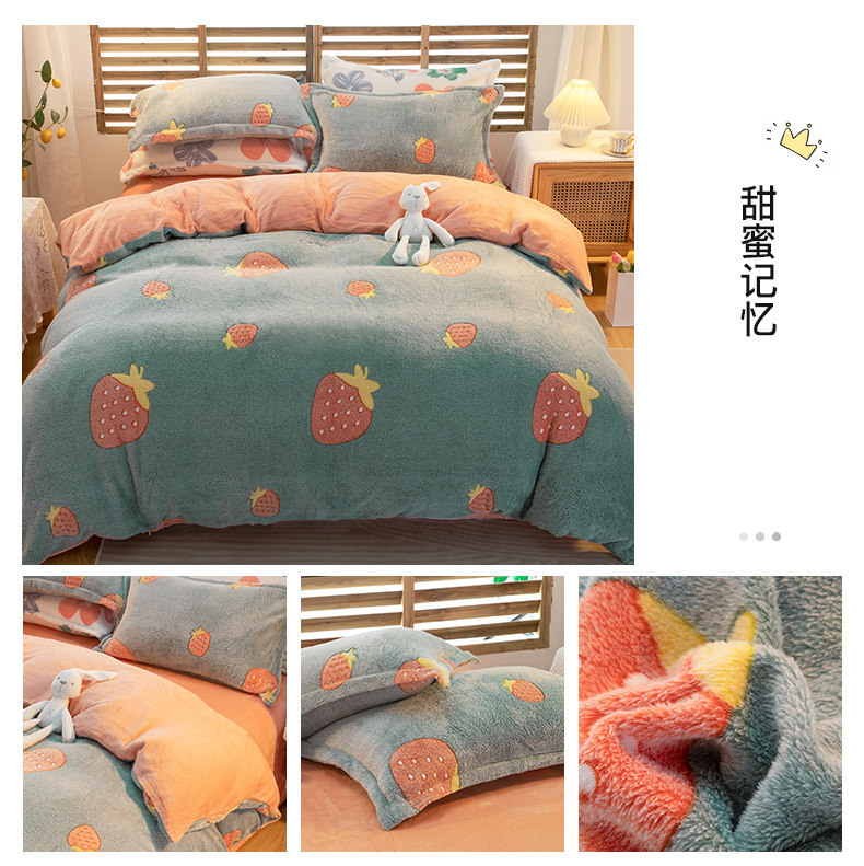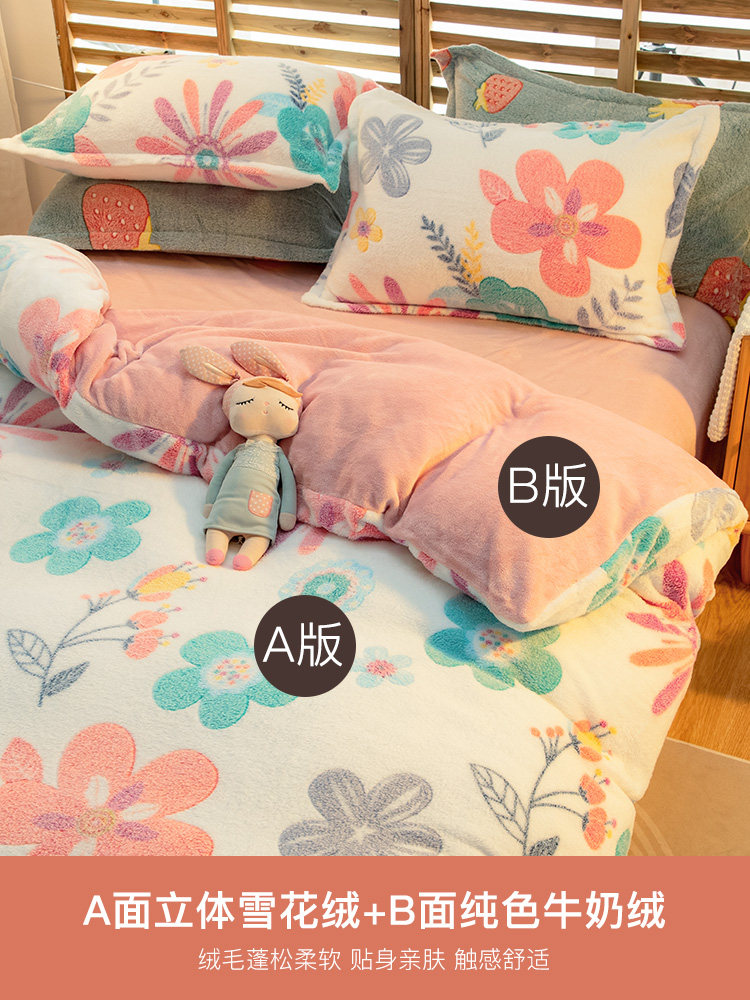 Зимний комплект, коралловый двусторонний удерживающий тепло пододеяльник, флисовая простыня, 4 предмета, увеличенная толщина, 3 предмета