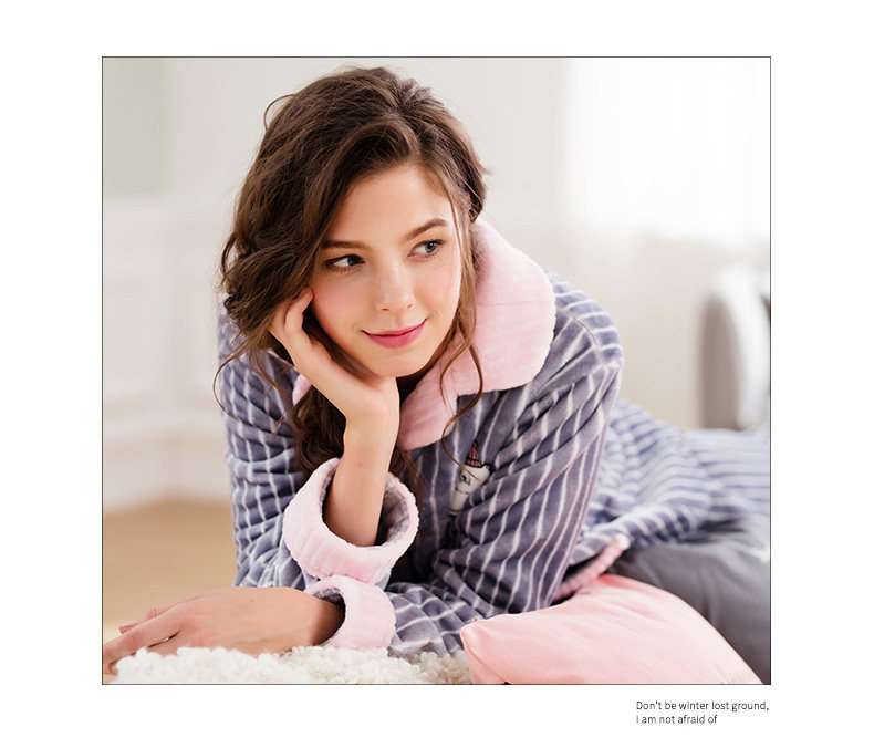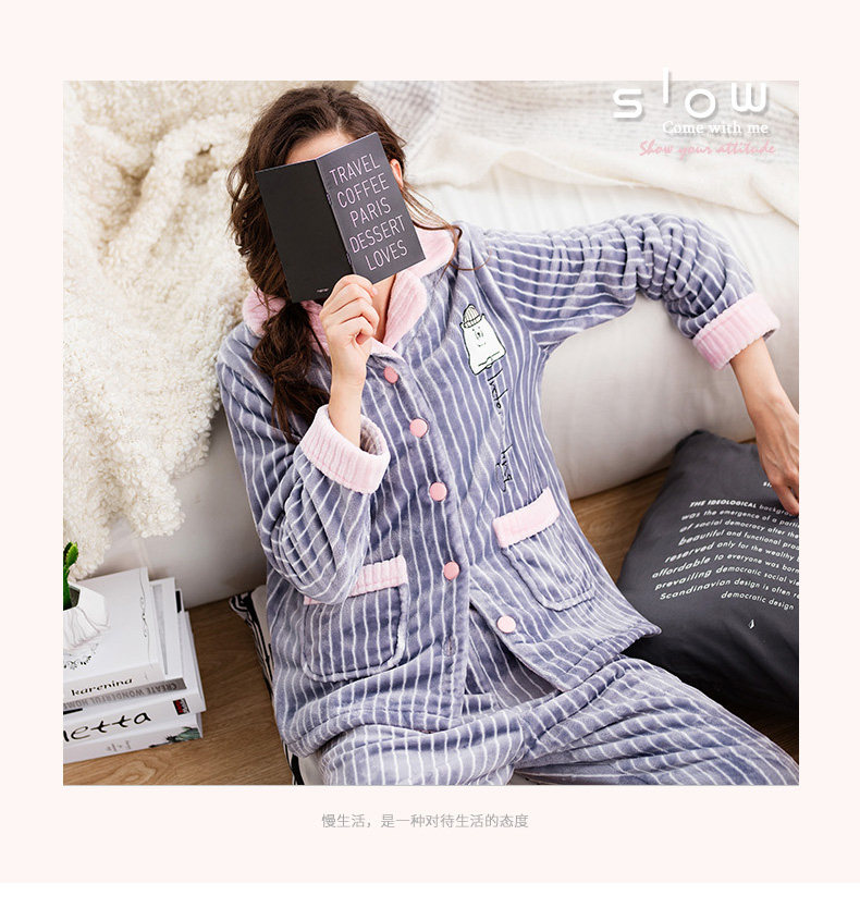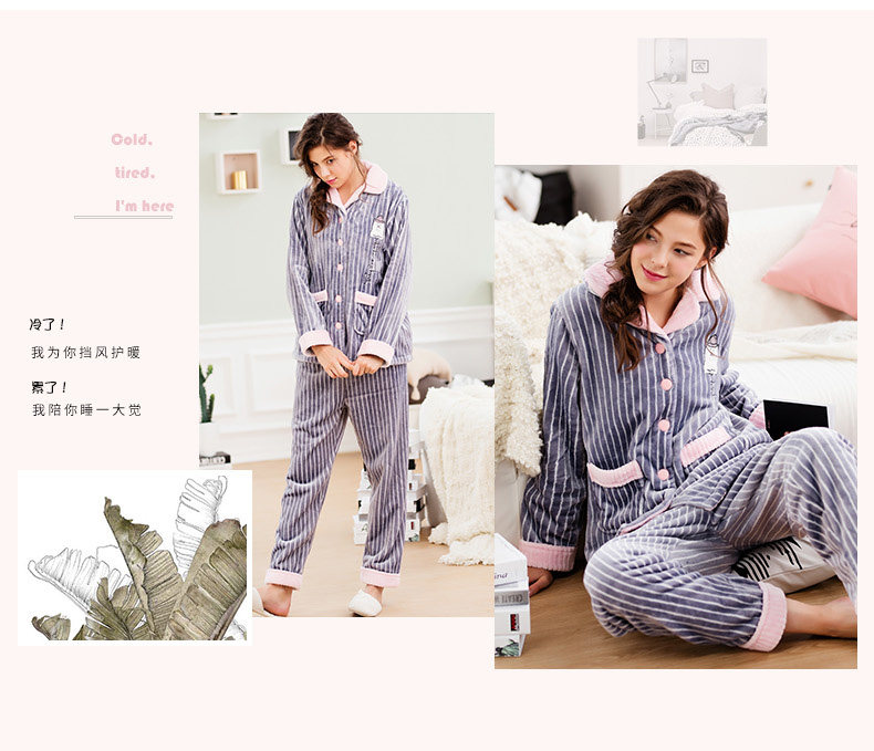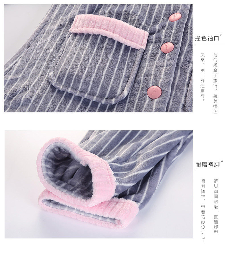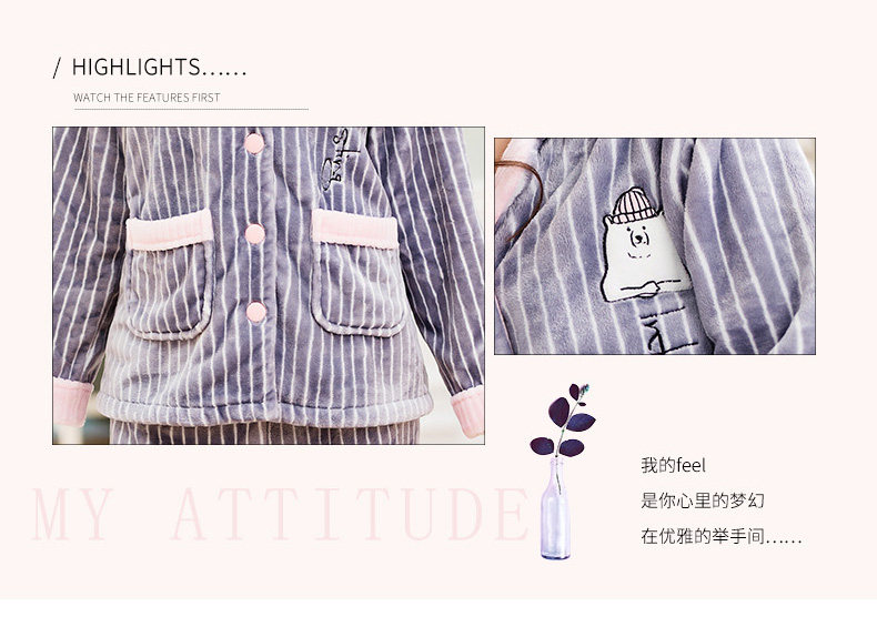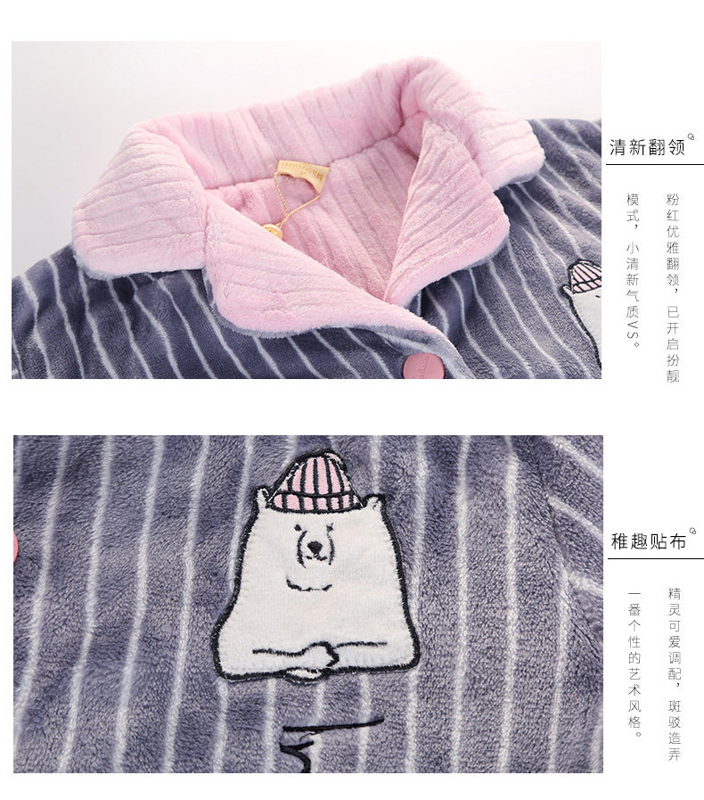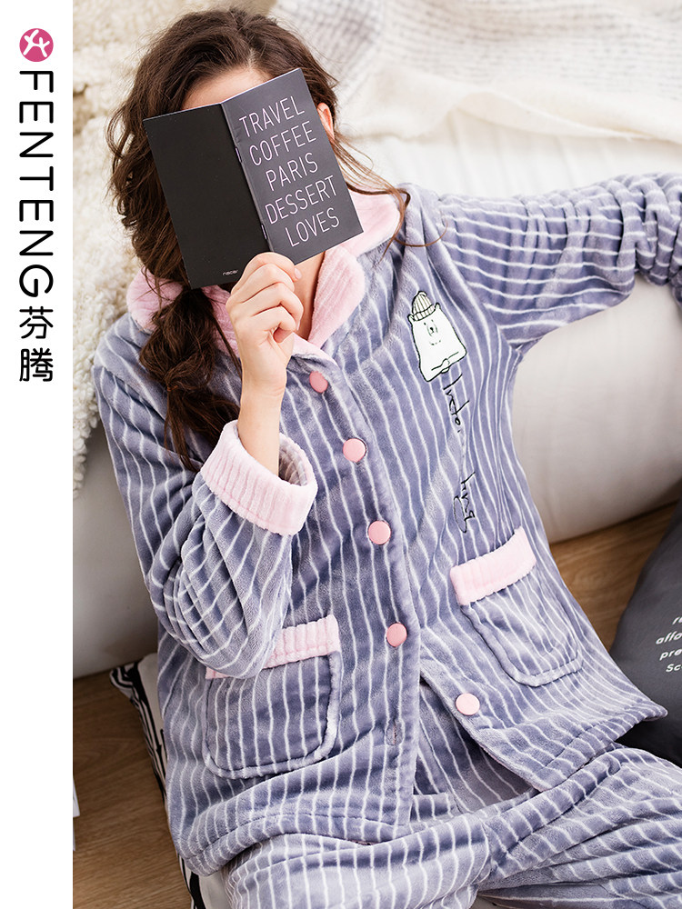 芬腾 Зимняя коралловая бархатная пижама, лонгслив, фланелевый бархатный кардиган, милый комплект, увеличенная толщина