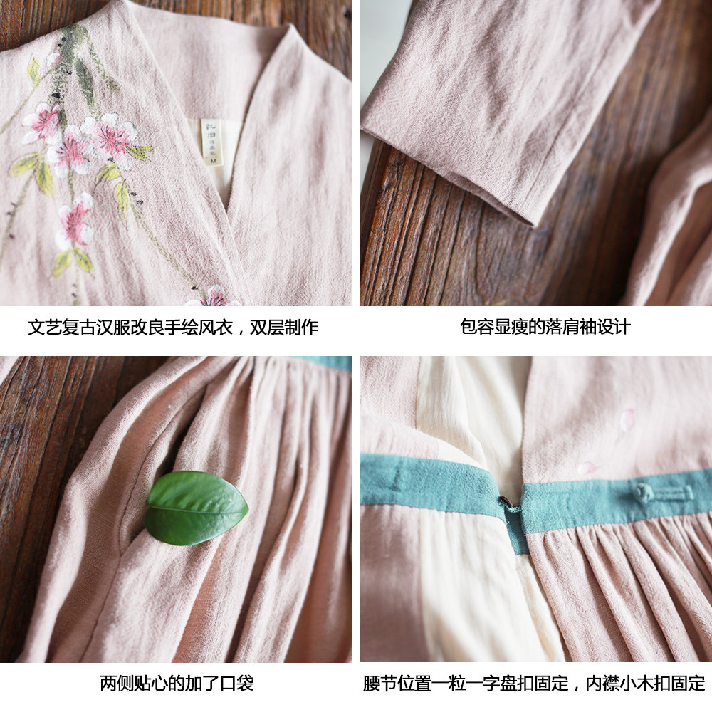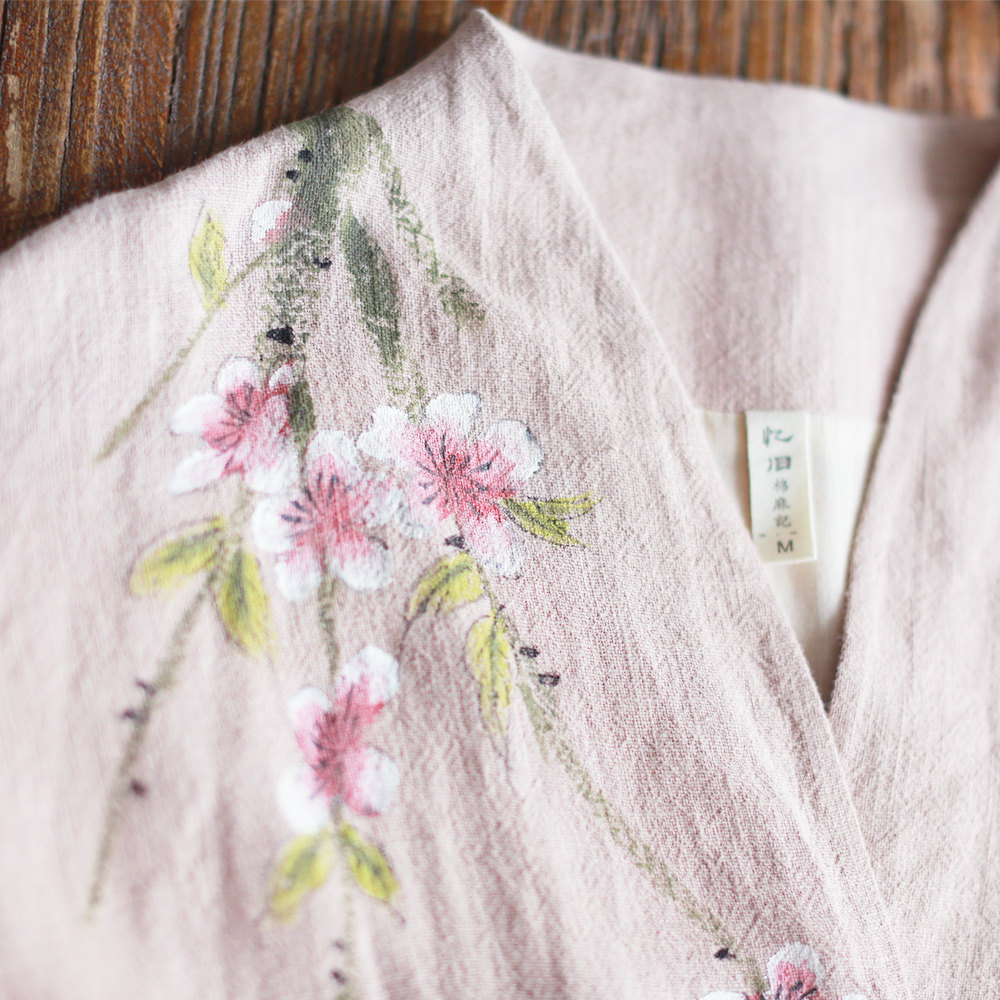 Кардиган, весенний плащ, ретро ханьфу, из хлопка и льна, ручная роспись, коллекция 2021