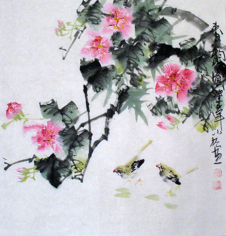 Чистое ручное раздаточное изображение Freeand Freehand Flower, птица, птица и чернила