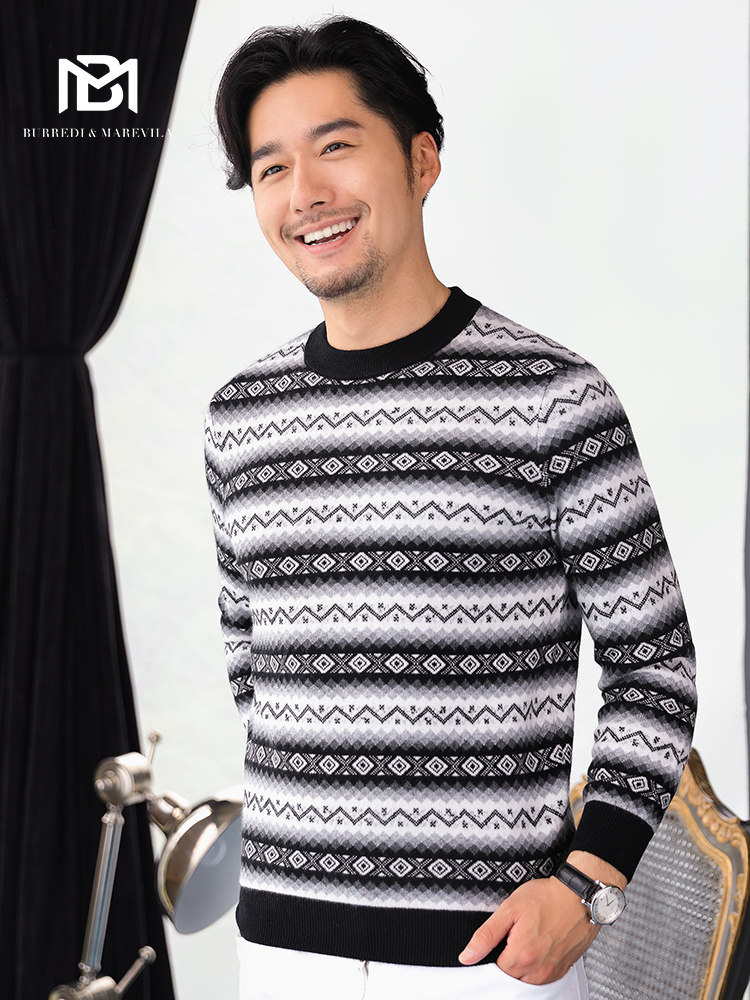 Модный трикотажный кашемировый ретро свитер, трендовый демисезонный лонгслив с круглым воротником, городской стиль, облегающий крой