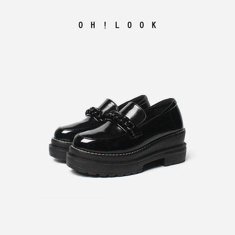 Весенняя универсальная цепь на платформе для школьников, черные лоферы на высоком каблуке, модель весна/осень 2023 года