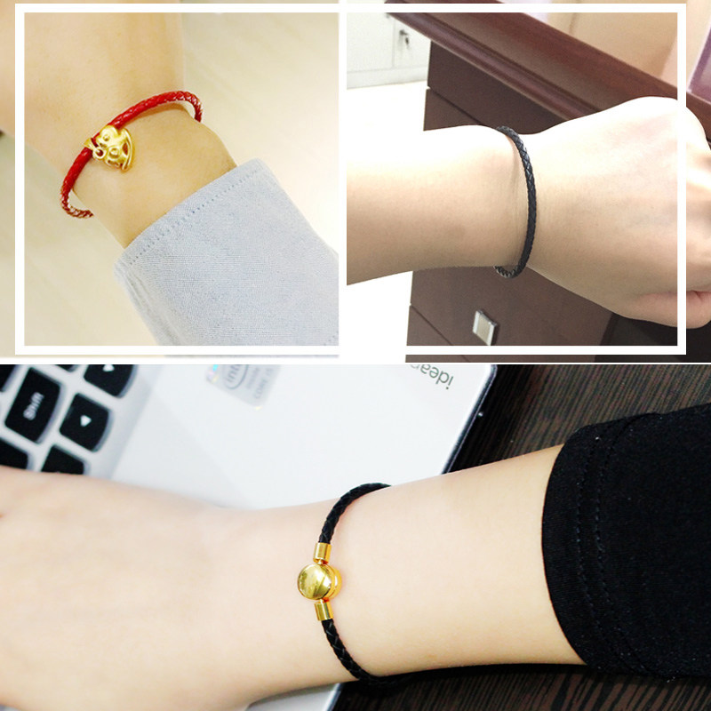 Оберег на день рождения, браслет из красной нити, золотой плетеный кожаный браслет с одной бусиной, для влюбленных