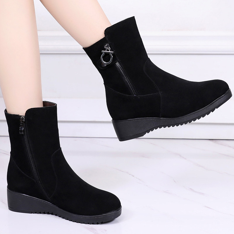 Martens, зимние ботинки, матовые флисовые универсальные короткие сапоги для матери, из натуральной кожи