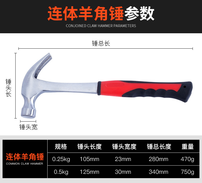 - 【Высокоуглеродистая сталь】 волокнистый молоток сладкого рога 0,5 кг/DL5002