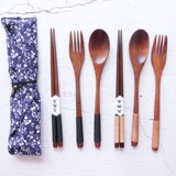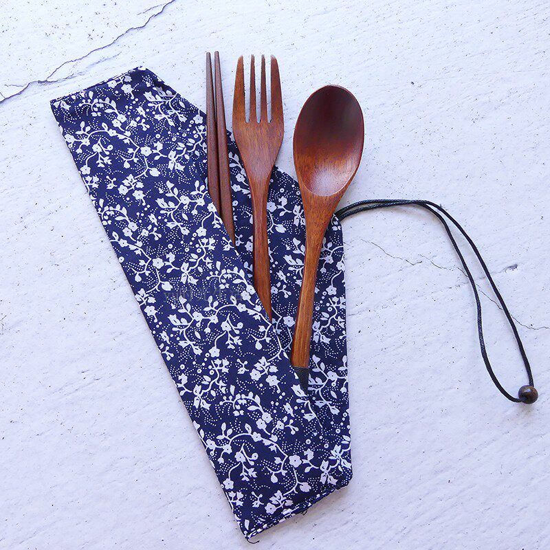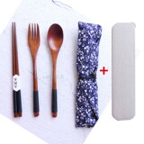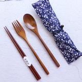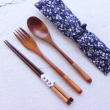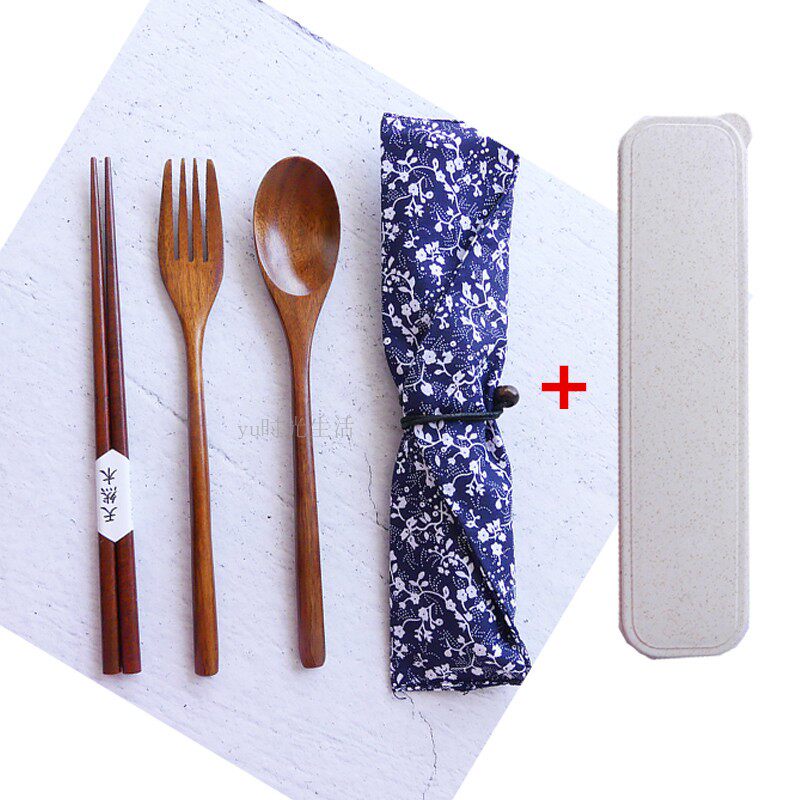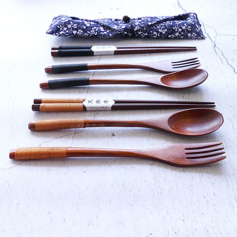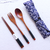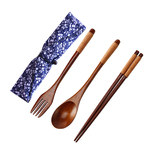 Деревянные палочки для еды, ложка, комплект для детей и взрослых, экологичная портативная дорожная посуда для школьников и студентов для путешествий, 3 предмета