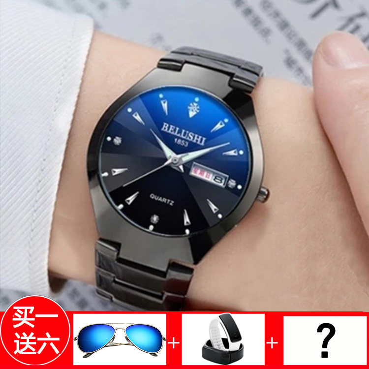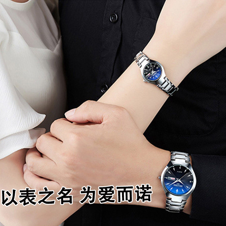 Мужские часы для влюбленных, водонепроницаемые кварцевые часы подходит для мужчин и женщин, механические механические часы, в корейском стиле, Вольфрамовая сталь
