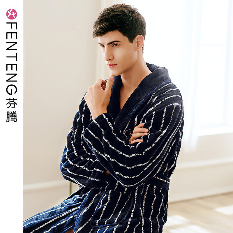 芬腾 Зимний банный халат, коралловый бархатный лонгслив, длинная удерживающая тепло фланелевая пижама для отдыха