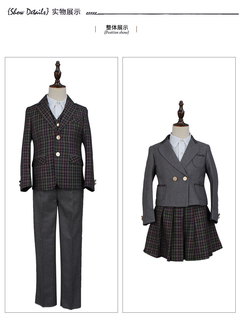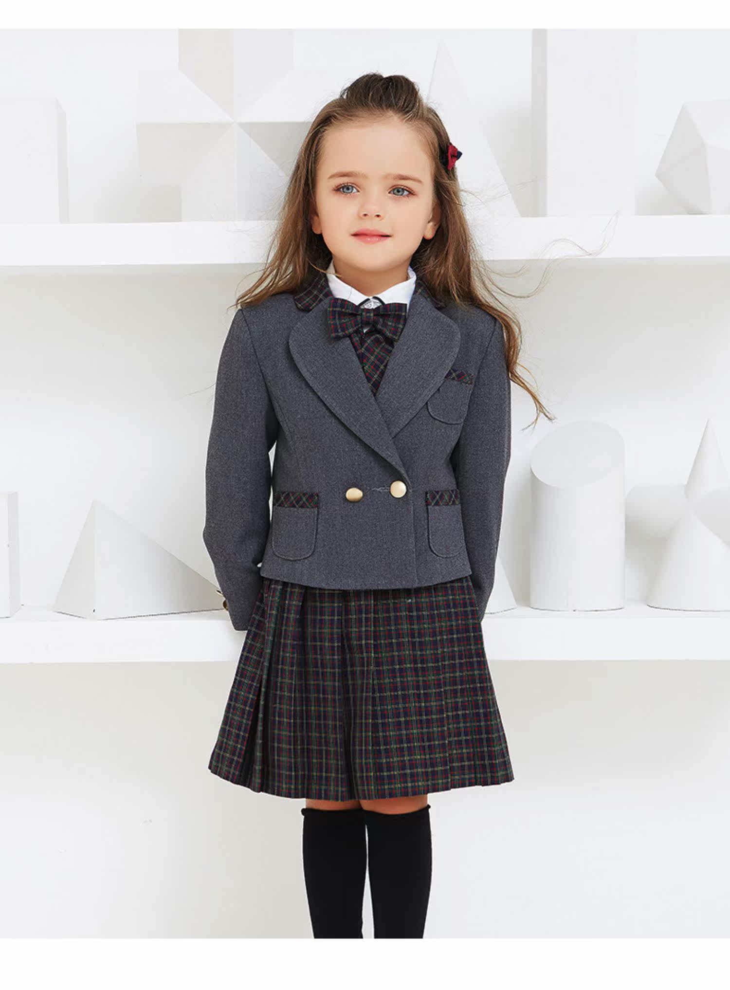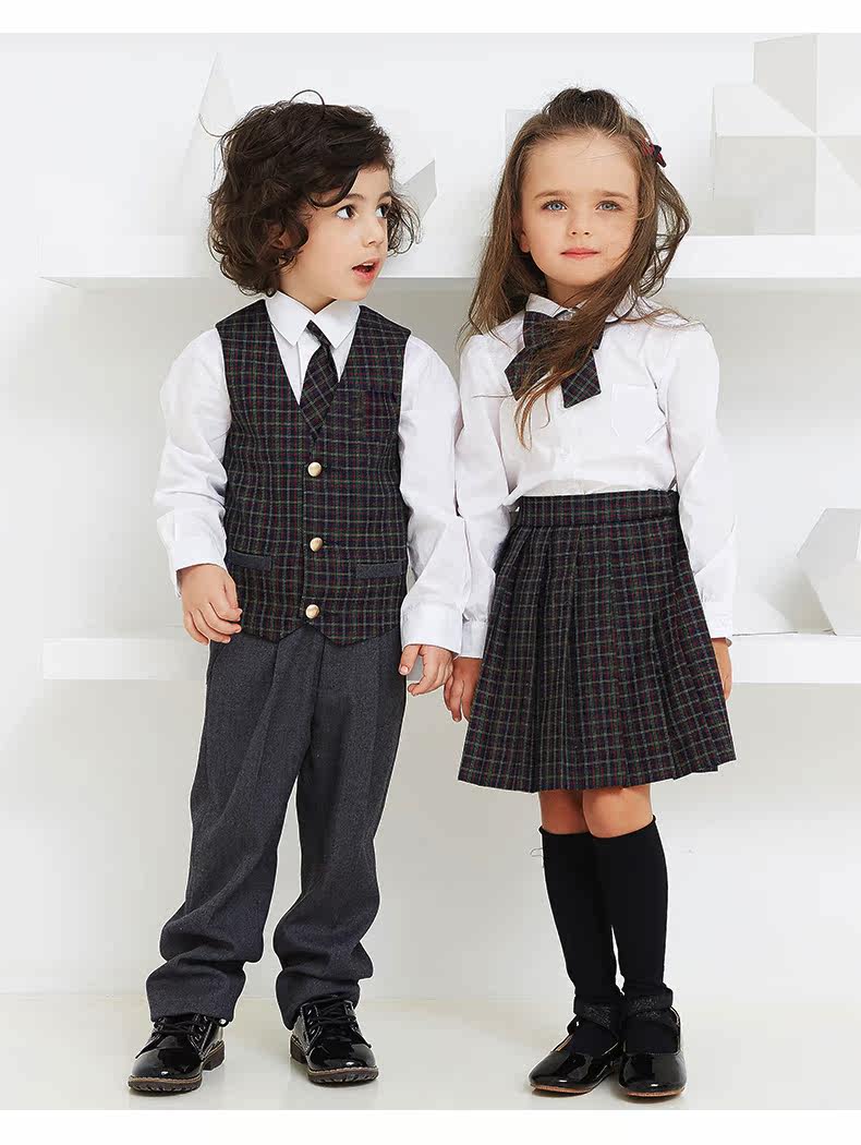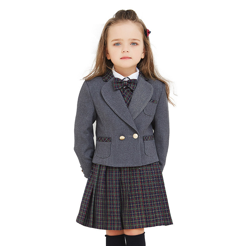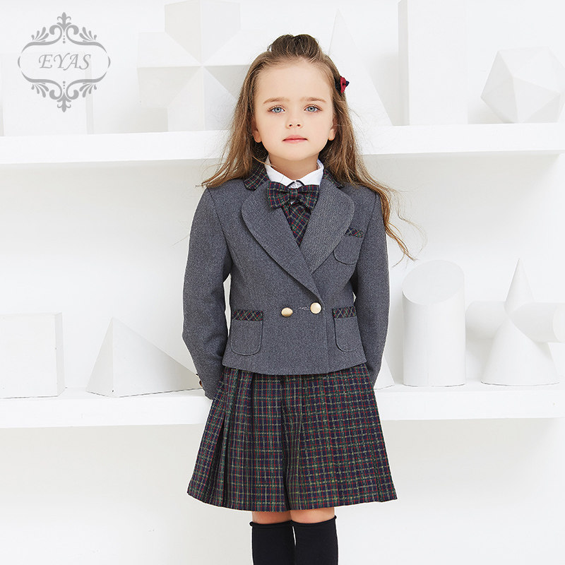 EYAS Детский пиджак классического кроя подходит для мужчин и женщин, жилет, юбка в складку, платье, зимний комплект, 3 предмета