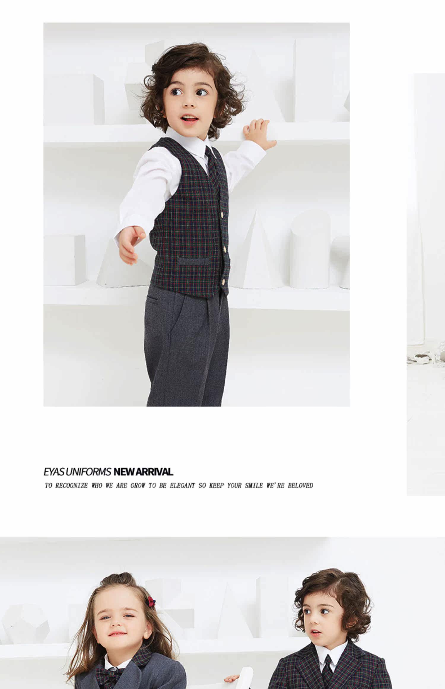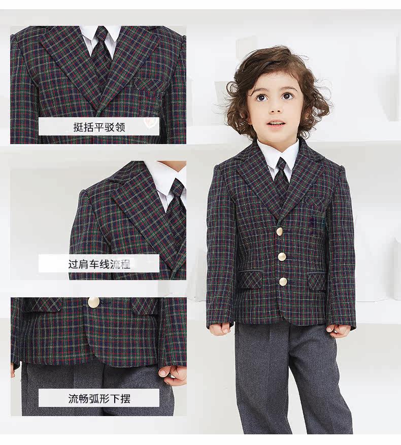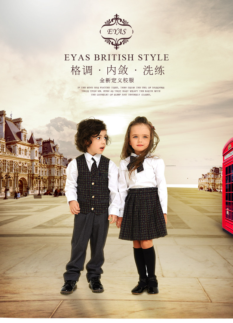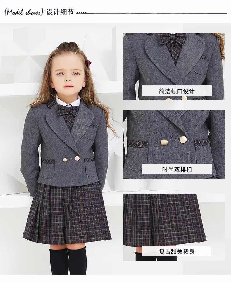 EYAS Детский пиджак классического кроя подходит для мужчин и женщин, жилет, юбка в складку, платье, зимний комплект, 3 предмета