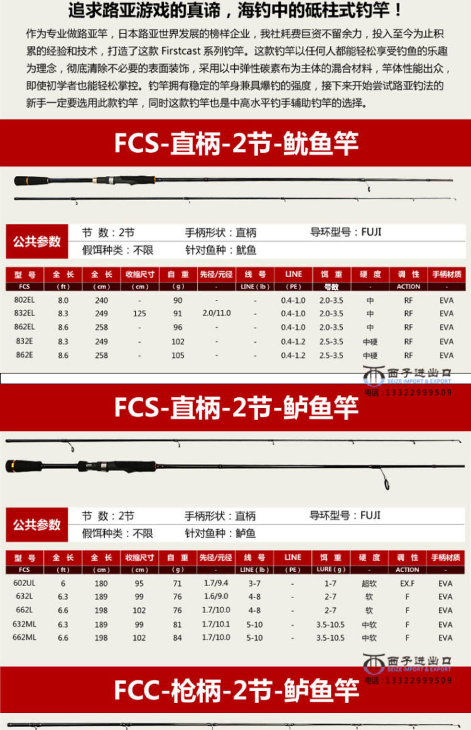 - FCS-832EL прямая ручка 2,49 метра стержень кальмара