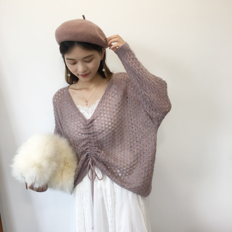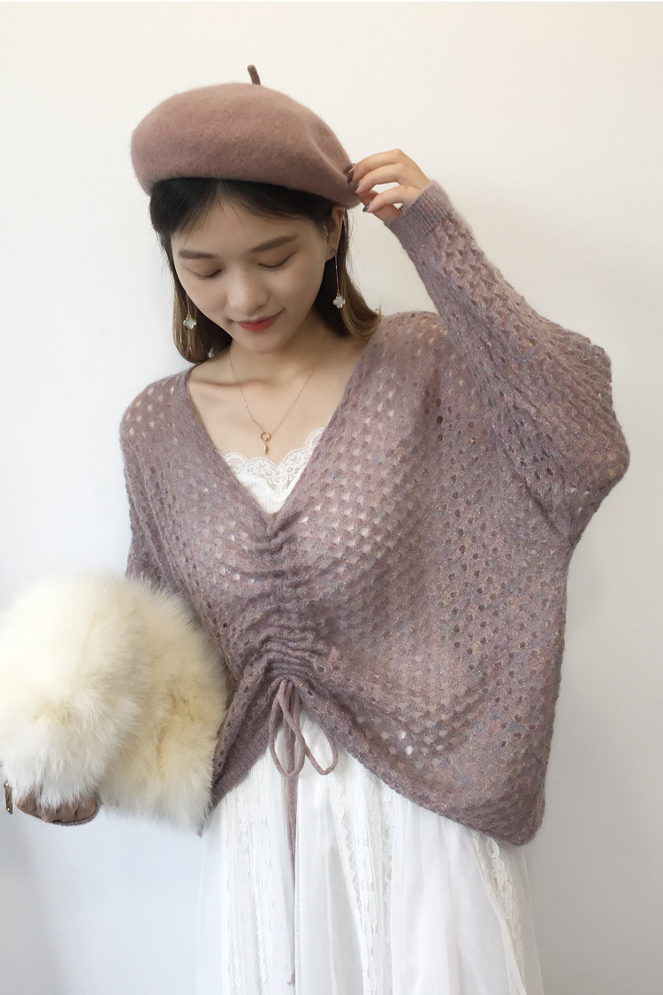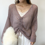 Импортный шерстяной трикотажный свитер, V-образный вырез, на шнурках