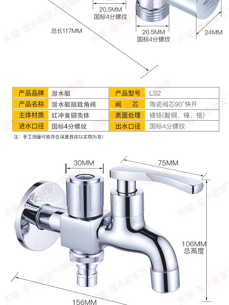 Один на подводной лодке -один -в двух, двухстороннем полном -Аутоматическая стиральная машина Специальная водяная кран, одно -два сустава, два -голова двойного заголовка
