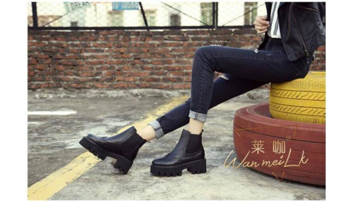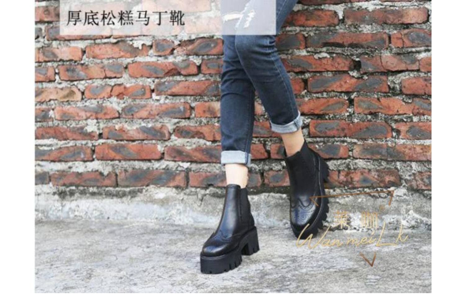 Невидимая внутренняя прибавка роста 9 см, подошва из воловьей кожи, ботинки Мартин, полая эластичная ткань, новые короткие ботинки, женские ботинки 6356k
