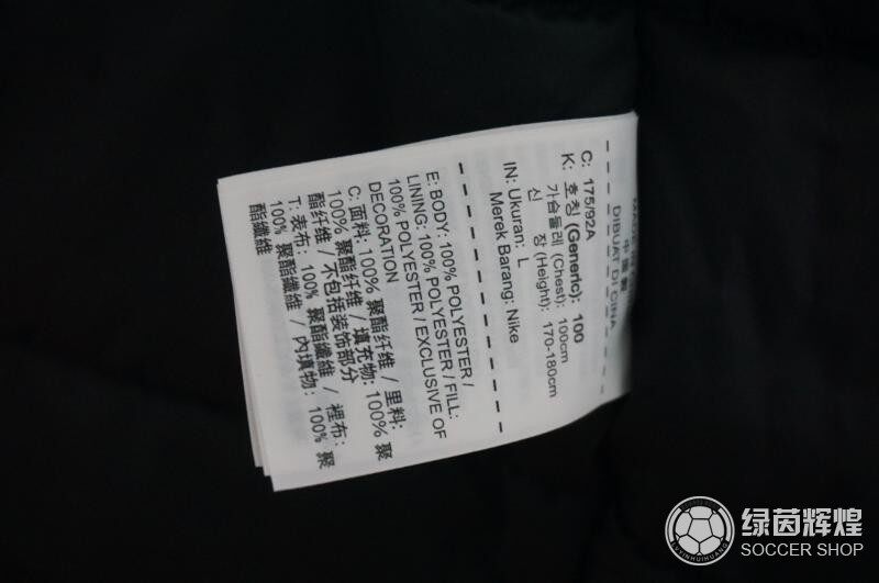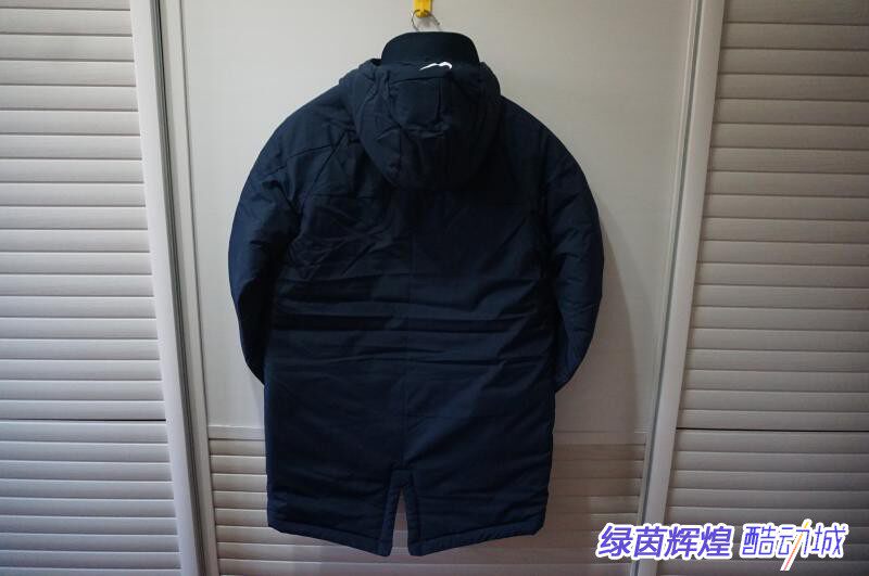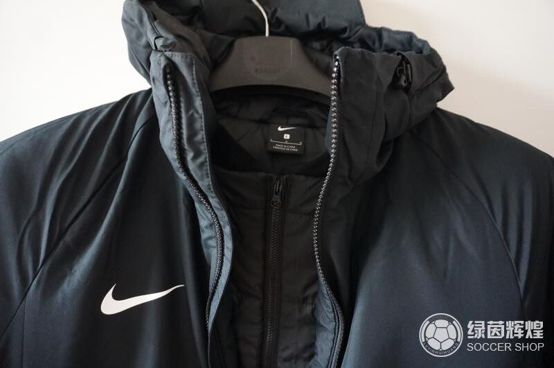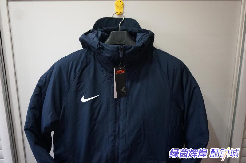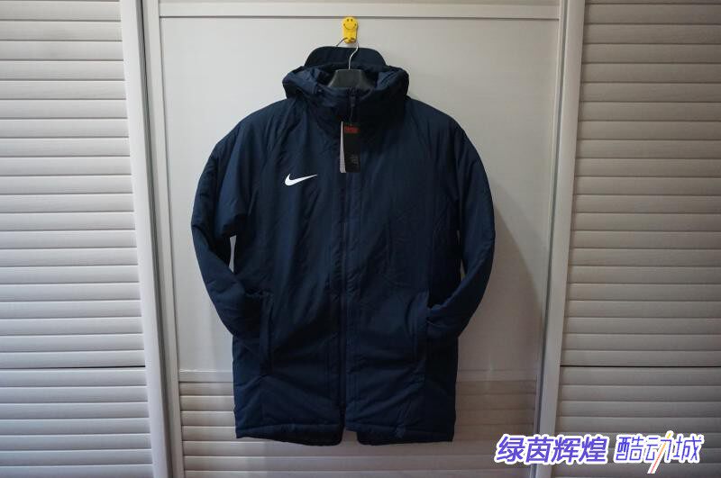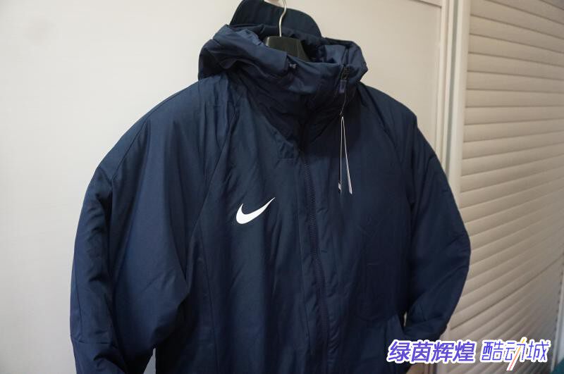 Хлопковое пальто в 18/19, материал теплоизоляции теплоизоляции Nike, 100% полиэфирного волокна, двухслойная конструкция молнии, форма задних воздуха, стандартный размер