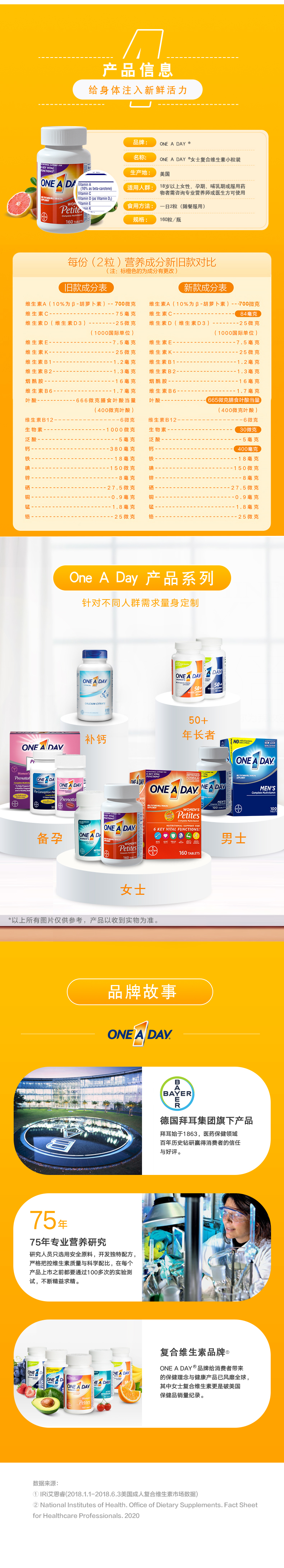 Bayer Oneaday г -жа г -жа Композитный витамин Камид Камид Маленький Миксл VC160 Комплексная биология женщин