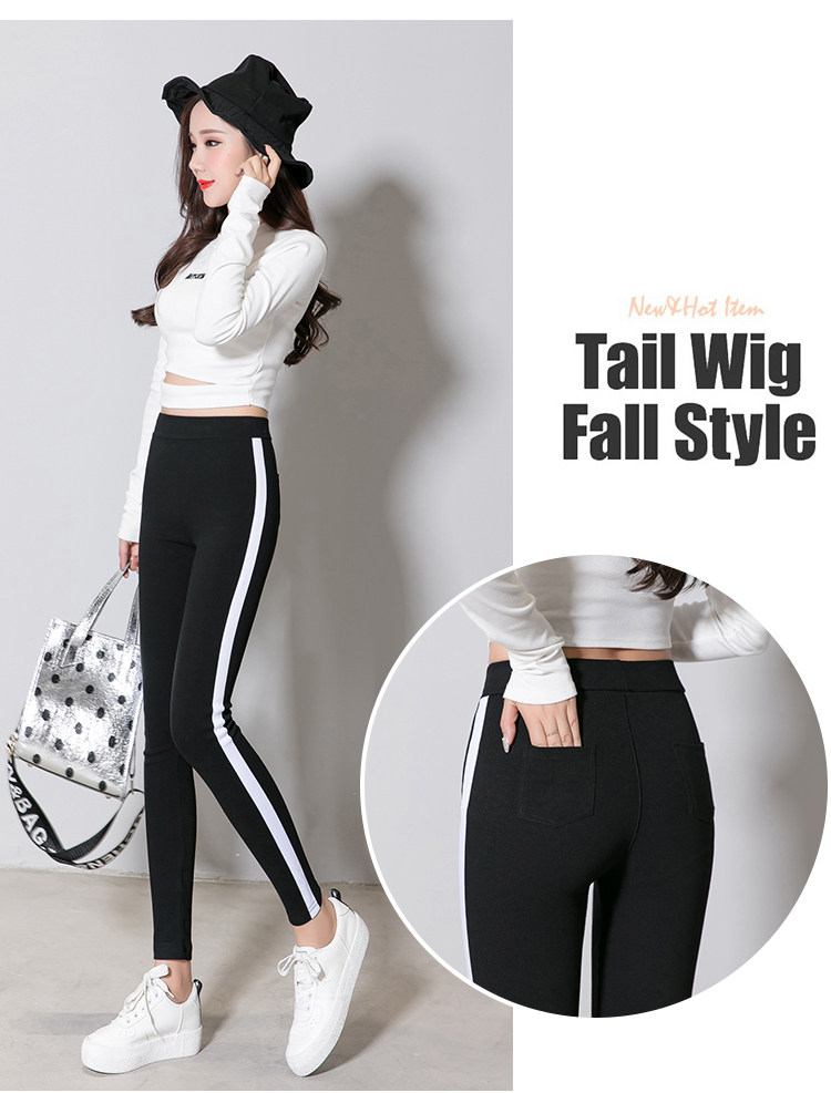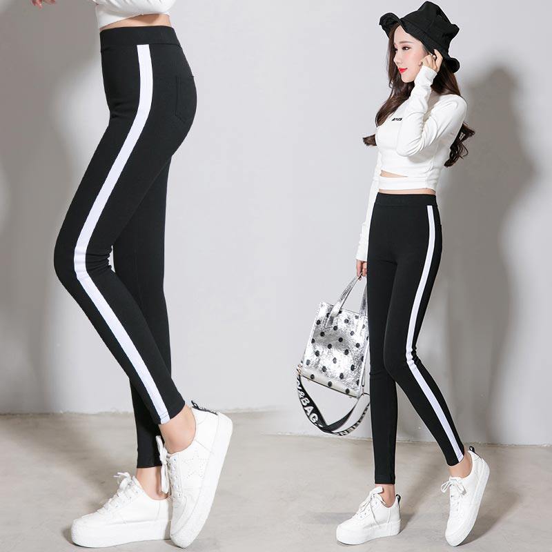 Леггинсы, эластичные черные тонкие штаны для школьников, в корейском стиле, по фигуре, в обтяжку, эластичная талия