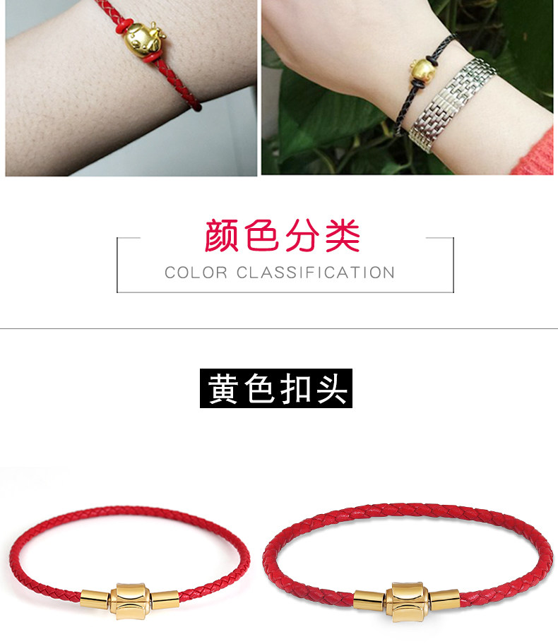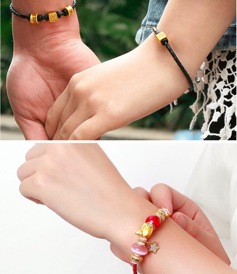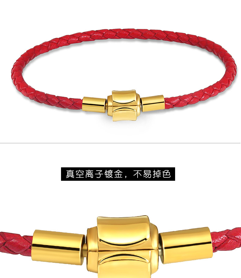 Золотой браслет с одной бусиной подходит для мужчин и женщин, оберег на день рождения из нержавеющей стали, браслет из красной нити, 3D