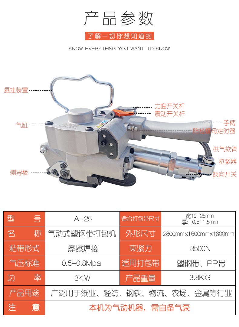 鑫凯驰 A25 Полностью автоматическая ручная пневматическая пневматическая стальная полоса Бесплатная пачка -Bundle -Bundle Hotte