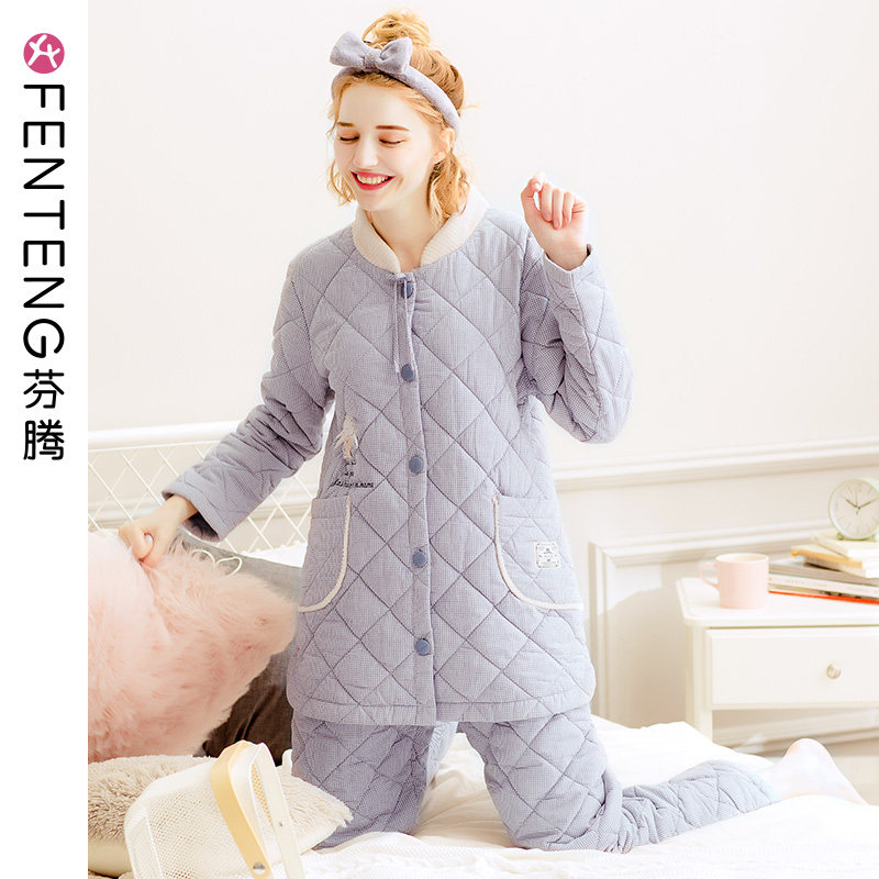 芬腾 Зимняя пижама, стеганый удерживающий тепло кардиган, куртка, комплект, увеличенная толщина
