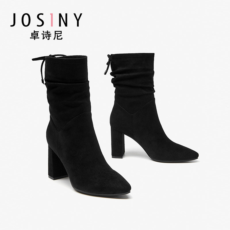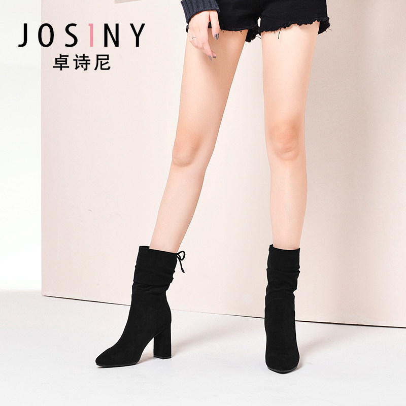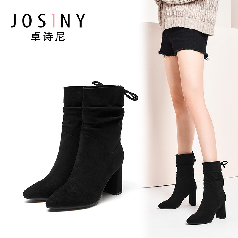 Зимние утепленные высокие модные сапоги с заостренным носом, ботинки, 2019, средней длины