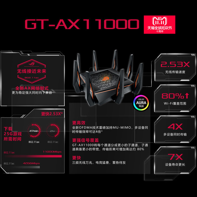 [Фаза 12 Беспроценка] ROG GT-AX11000 Octopus, восьмилоковой рыбной маршрутизатор Wi-Fi6 Ускоряйте электронную карту.