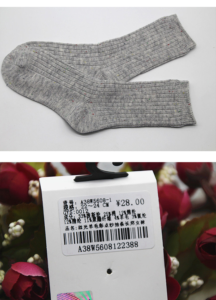 3ZU Footwear Show A38W5608-1 Купите один, получите один бесплатно для осенне-зимних длинных китайских женских носков из мерсеризованной шерсти в полоску