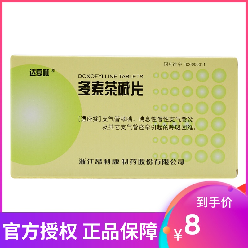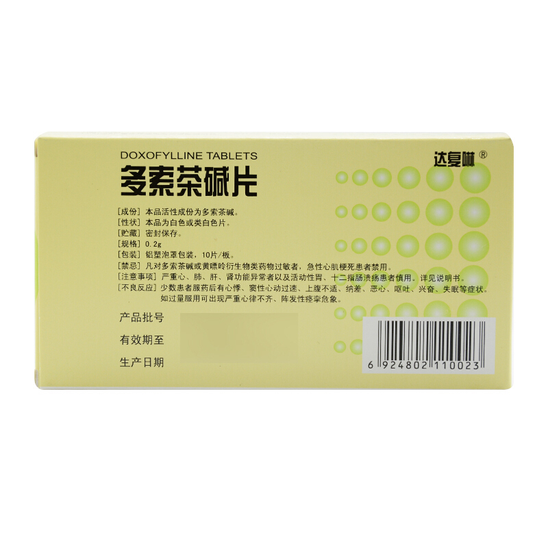 达复啉 Таблетки доксофиллина 0,2 г*10 таблеток/коробка одышка, бронхиальная астма, хронический бронхит, бронхоспазм, хрипы, бронхит, противоастматическая одышка