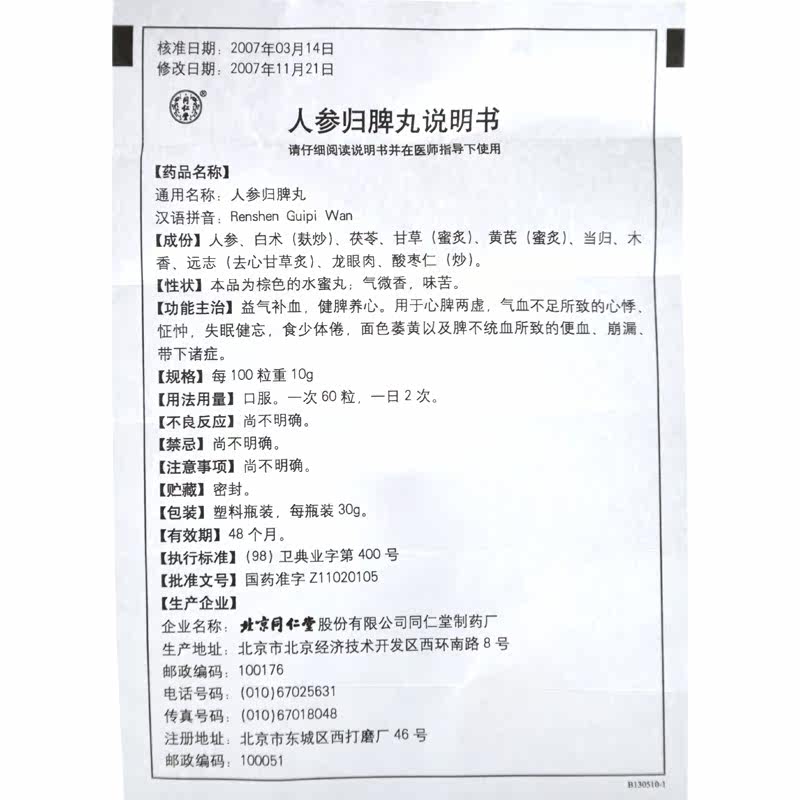 同仁堂 Жиненс Гипи таблетки 30 г*1 бутылка/коробка