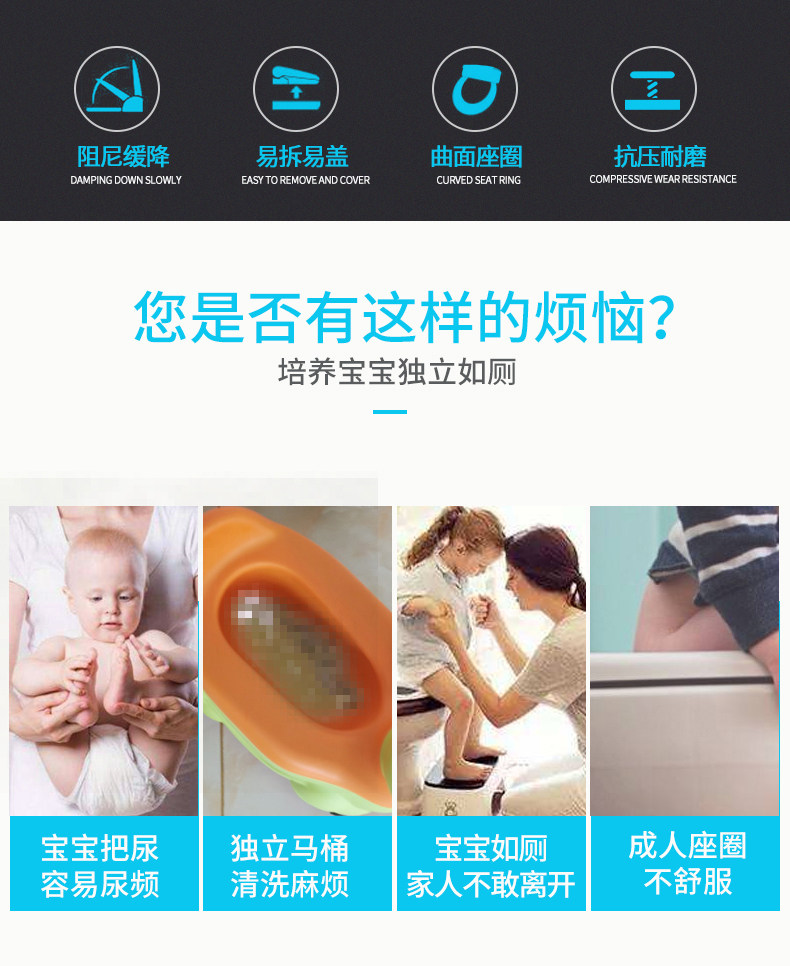 Погрузка лодки матери туалетная крышка сгущенной и замедляет сиденье V -типа, покрывающие взрослые и дети с двойной туалетной крышкой