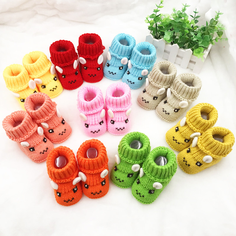 Демисезонные шерстяные детские плетеные удерживающие тепло носки для новорожденных, обувь, увеличенная толщина, мягкая подошва, 0-6 мес.