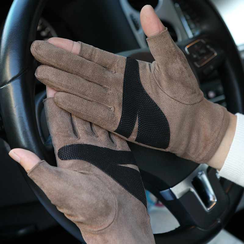 Теплые перчатки унисекс из искусственной замши открытые 𫔭поглощающие пот перчатки без пальцев для вождения автомобиля