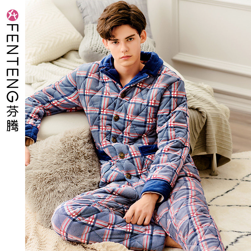 芬腾 Демисезонная коралловая бархатная стеганая флисовая удерживающая тепло пижама, комплект, простой и элегантный дизайн, увеличенная толщина