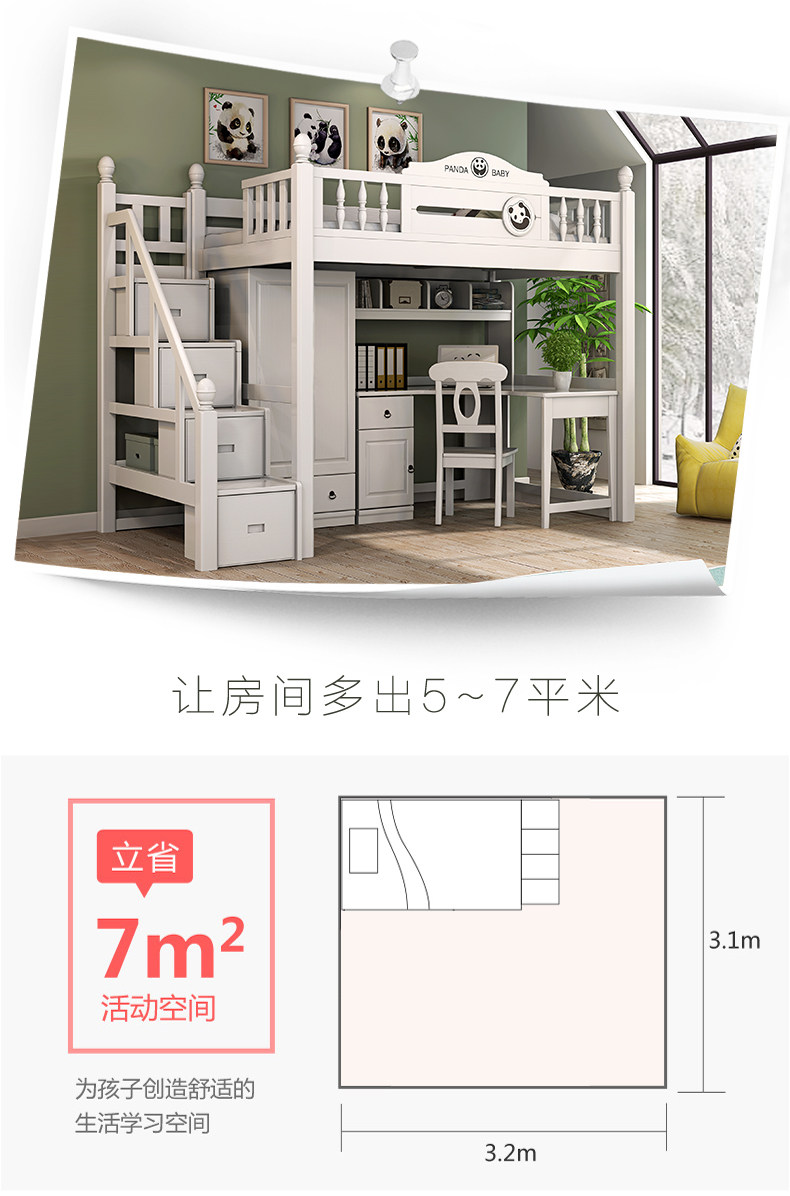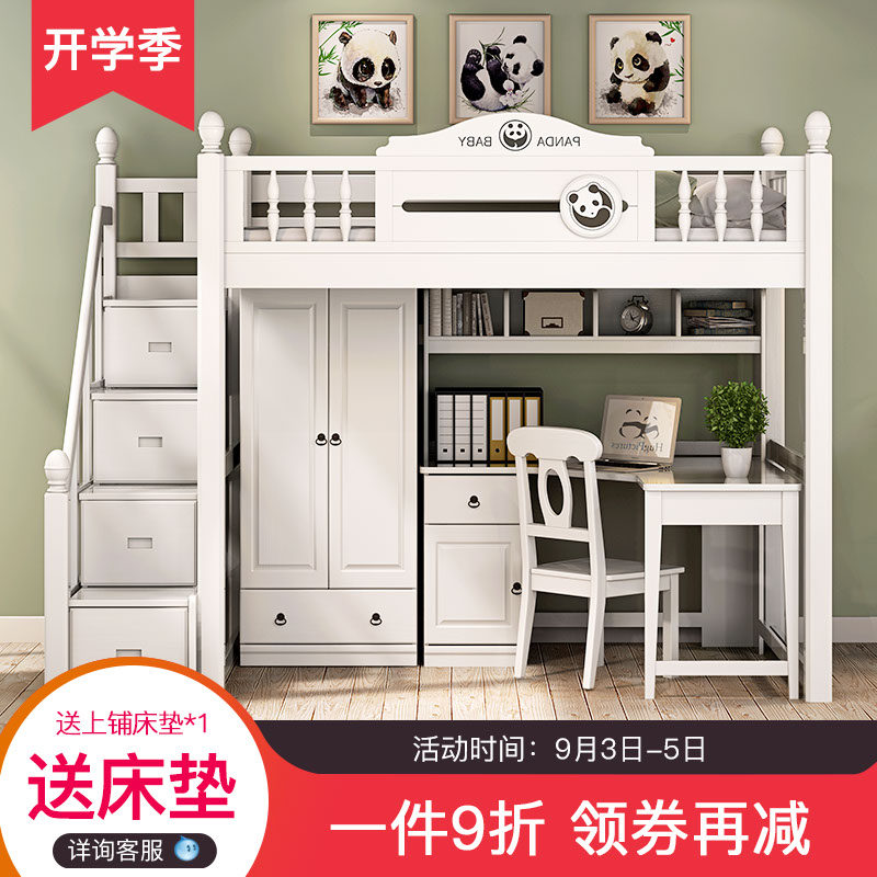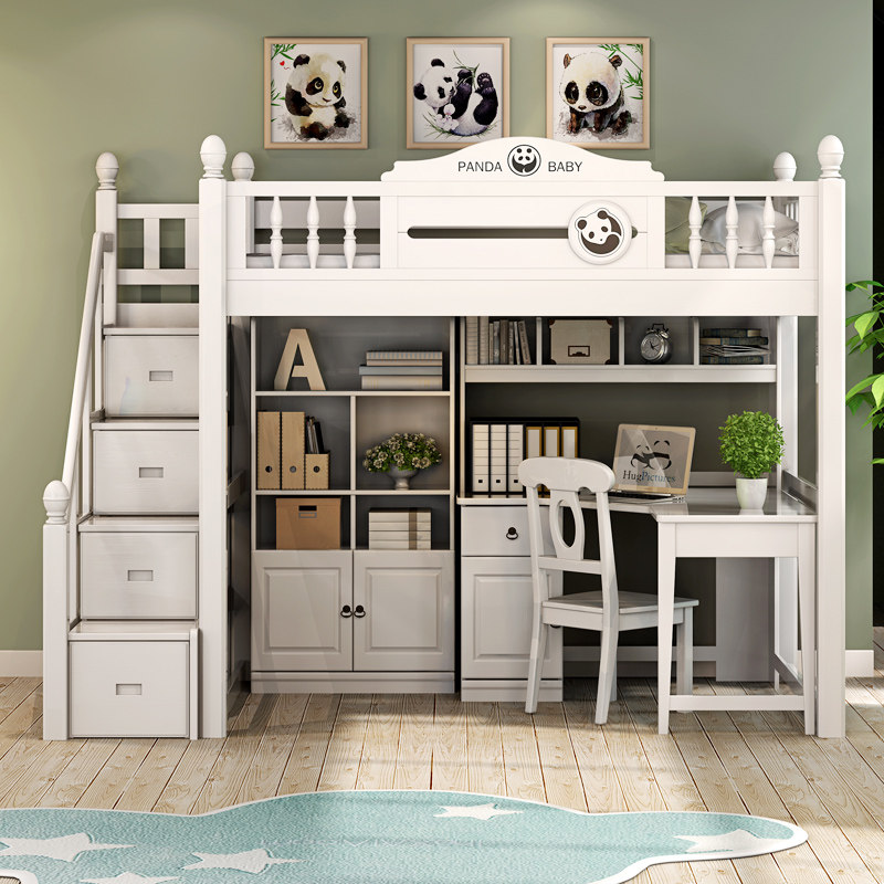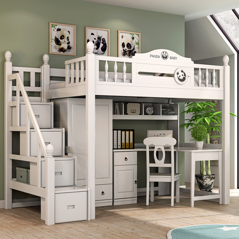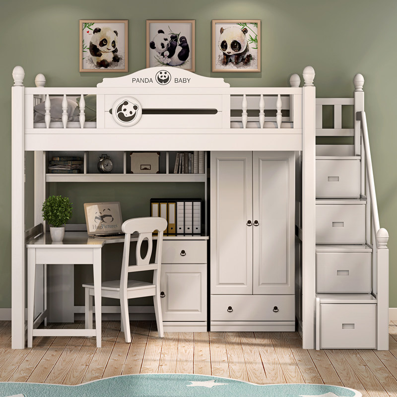 Все дети из дерева ложится спать многофункциональной комбинацией высокой и низкой кровати с настольным компьютером.