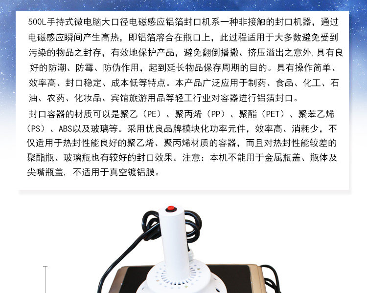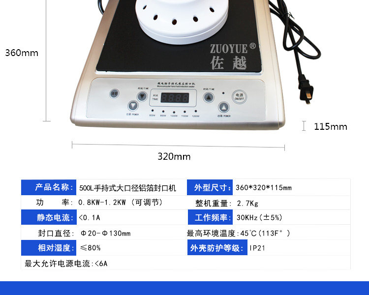 佐越 500L Ручная машина с большой калибкой электромагнитной индукционной индукционной алюминиевой алюминиевой уплотнение Фольга Машина масляная бочка пластиковая бутылка медовая стеклянная бутылка таблетка алюминиевая фольга ТАБЛИЧА