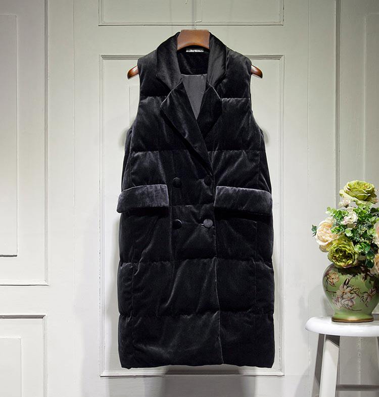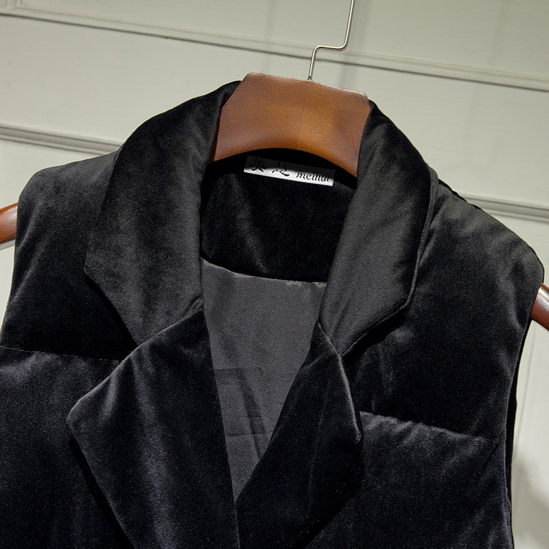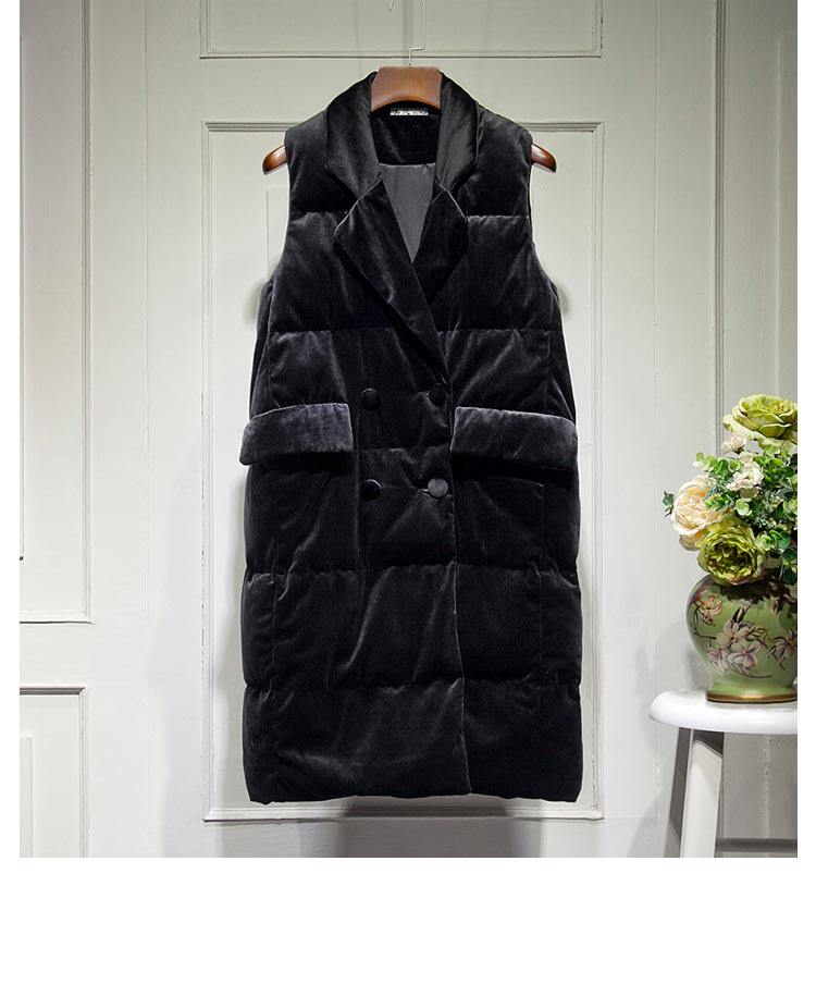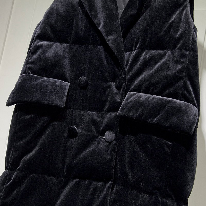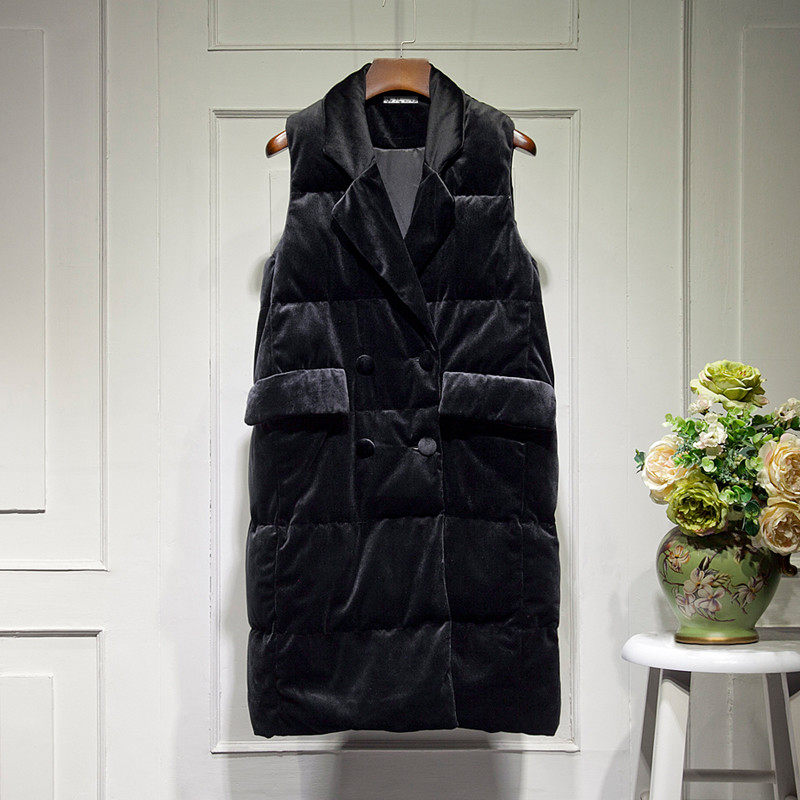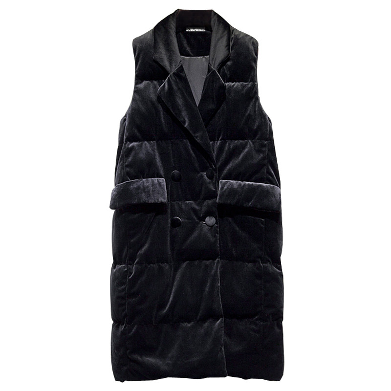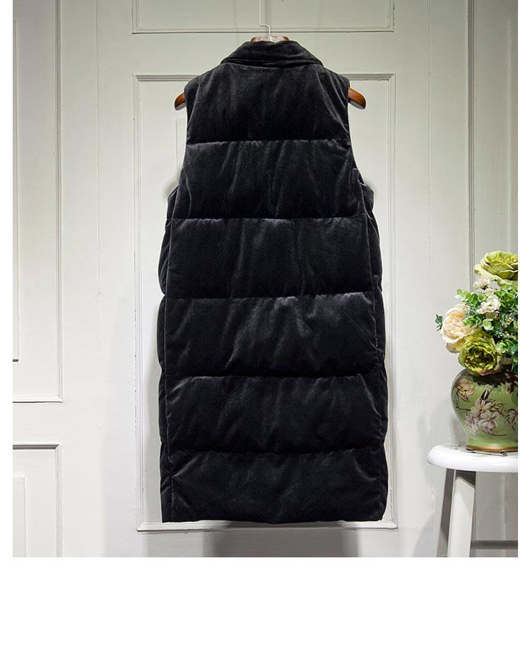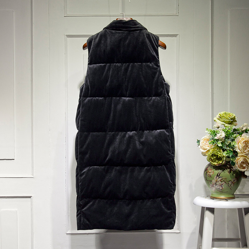 Зимний вельветовый бархатный жилет с пухом без рукавов, 2023, средней длины, набивка пером