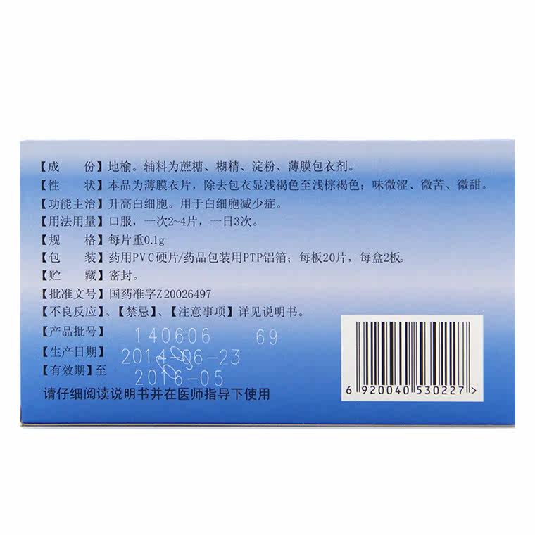 地榆 Di Yu Sheng Белые таблетки 0,1 г*40 таблетки/коробка