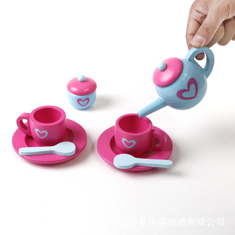 Деревянный детский семейный чайный сервиз, реалистичный послеобеденный чай, комплект, игрушка, раннее развитие