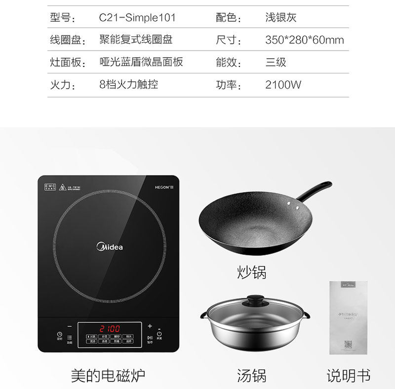 Электромагнитная плита Midea/Midea Simple101 постоянна и даже горячий спекуляторный горячий горшок с горячей плитой аккумулятора Smart Touch