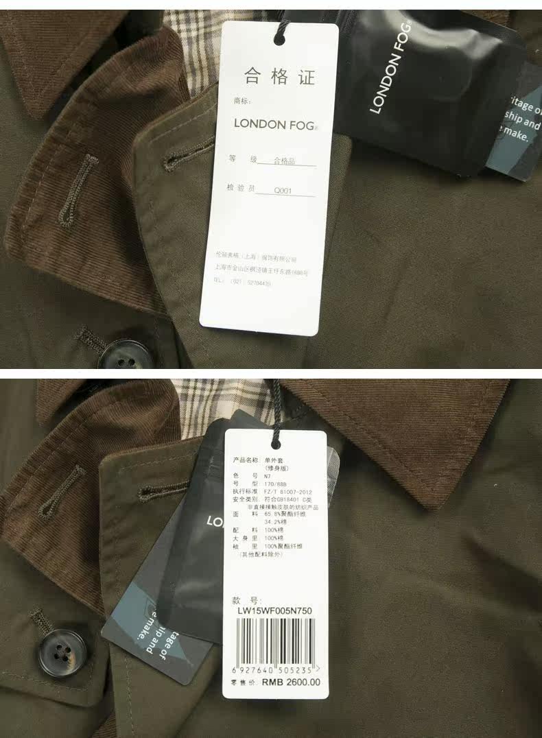 LONDON FOG/伦敦雾 Подлинная мужская функциональная куртка отворота с двойной светистой китайской траншевой пальто LW15WF005