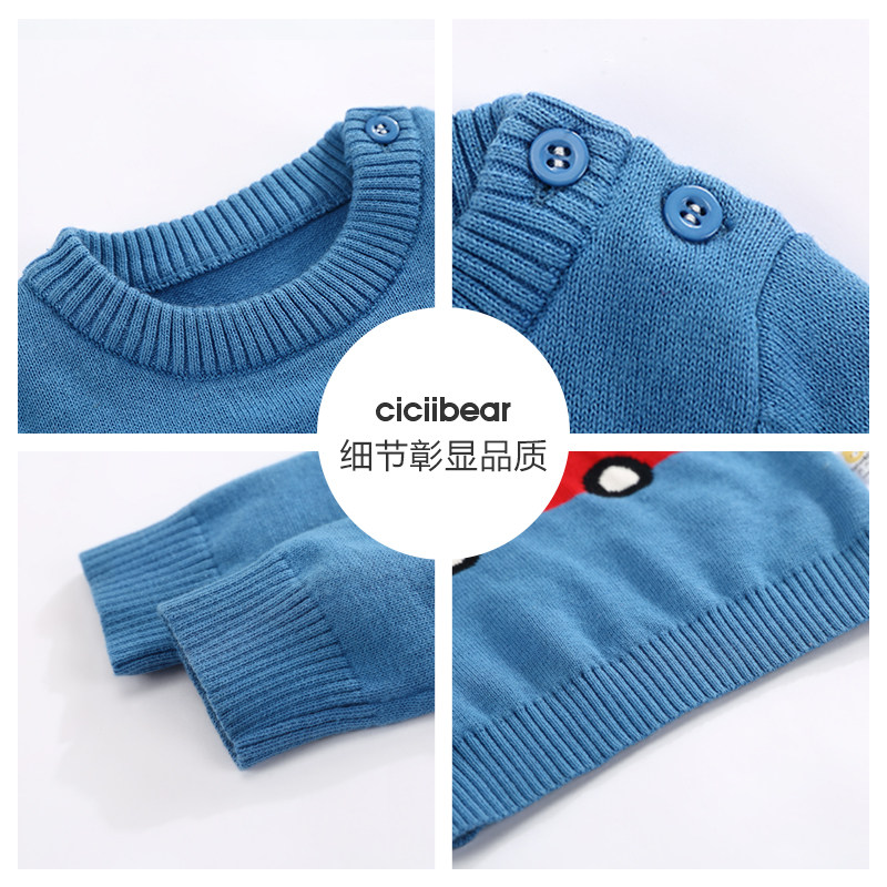 Весенний трикотажный детский хлопковый свитер подходит для мужчин и женщин для младенца с круглым воротником, тренд сезона