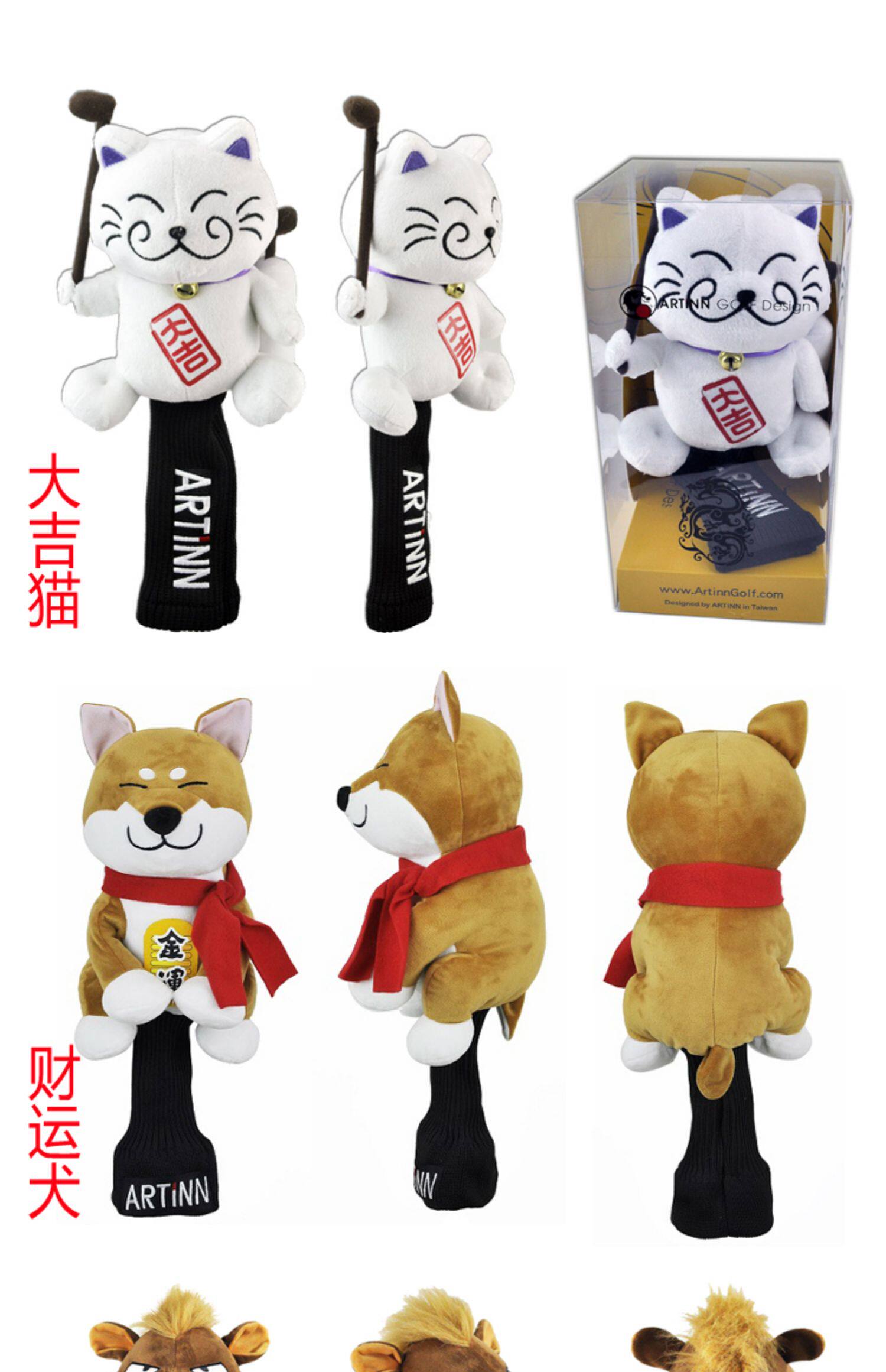Artinn Golf Head Cover Cover Silly Eagle, Wangcai Cai Cat № 1 Деревянный мяч, деревянный полюс