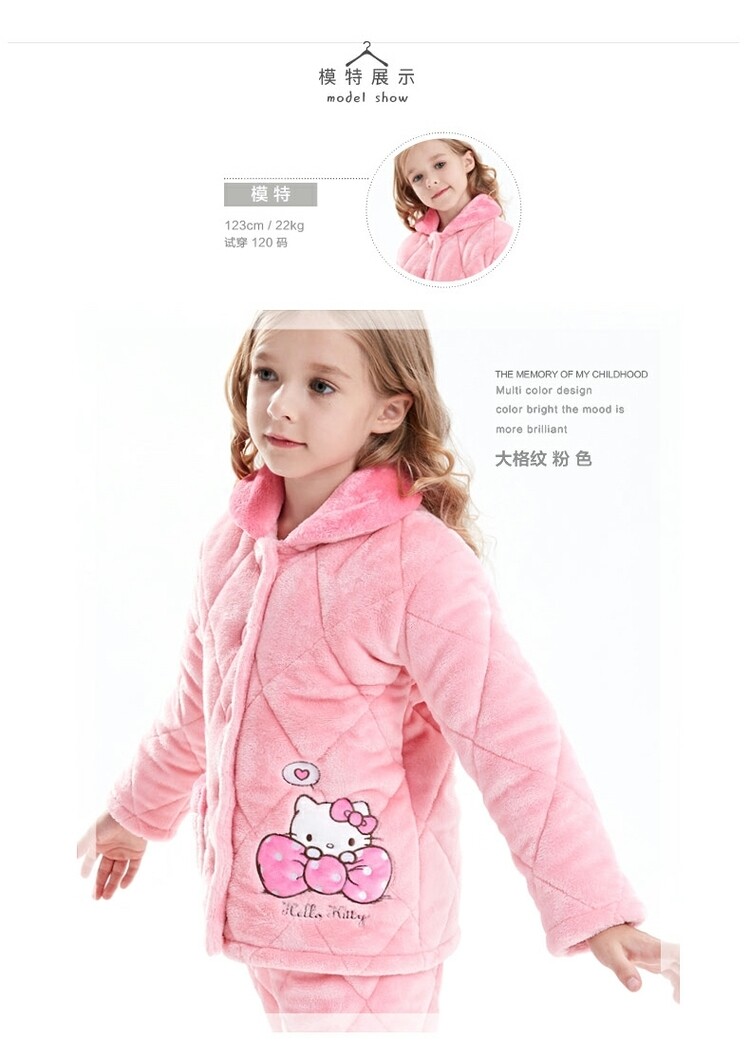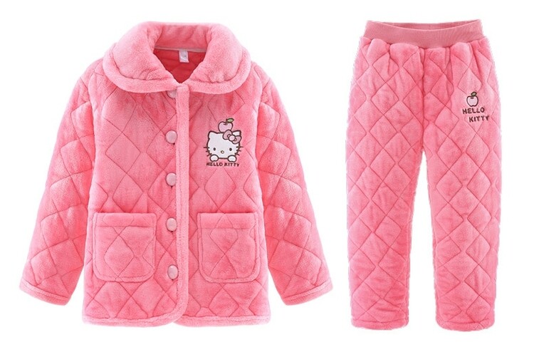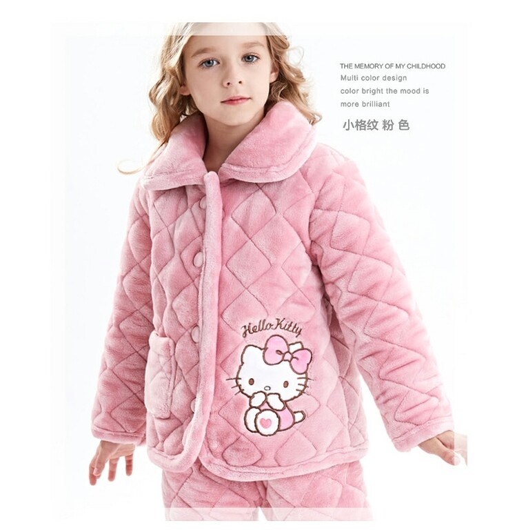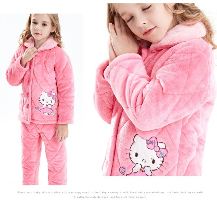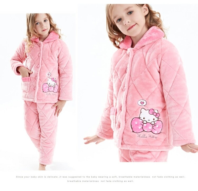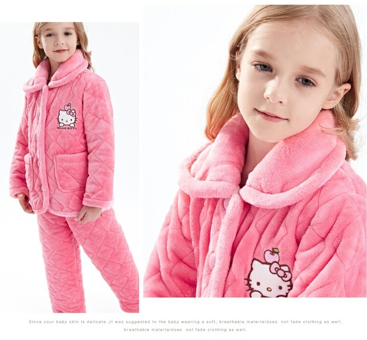 Hello kitty, детская фланелевая пижама, утепленный детский комплект, подходит для подростков