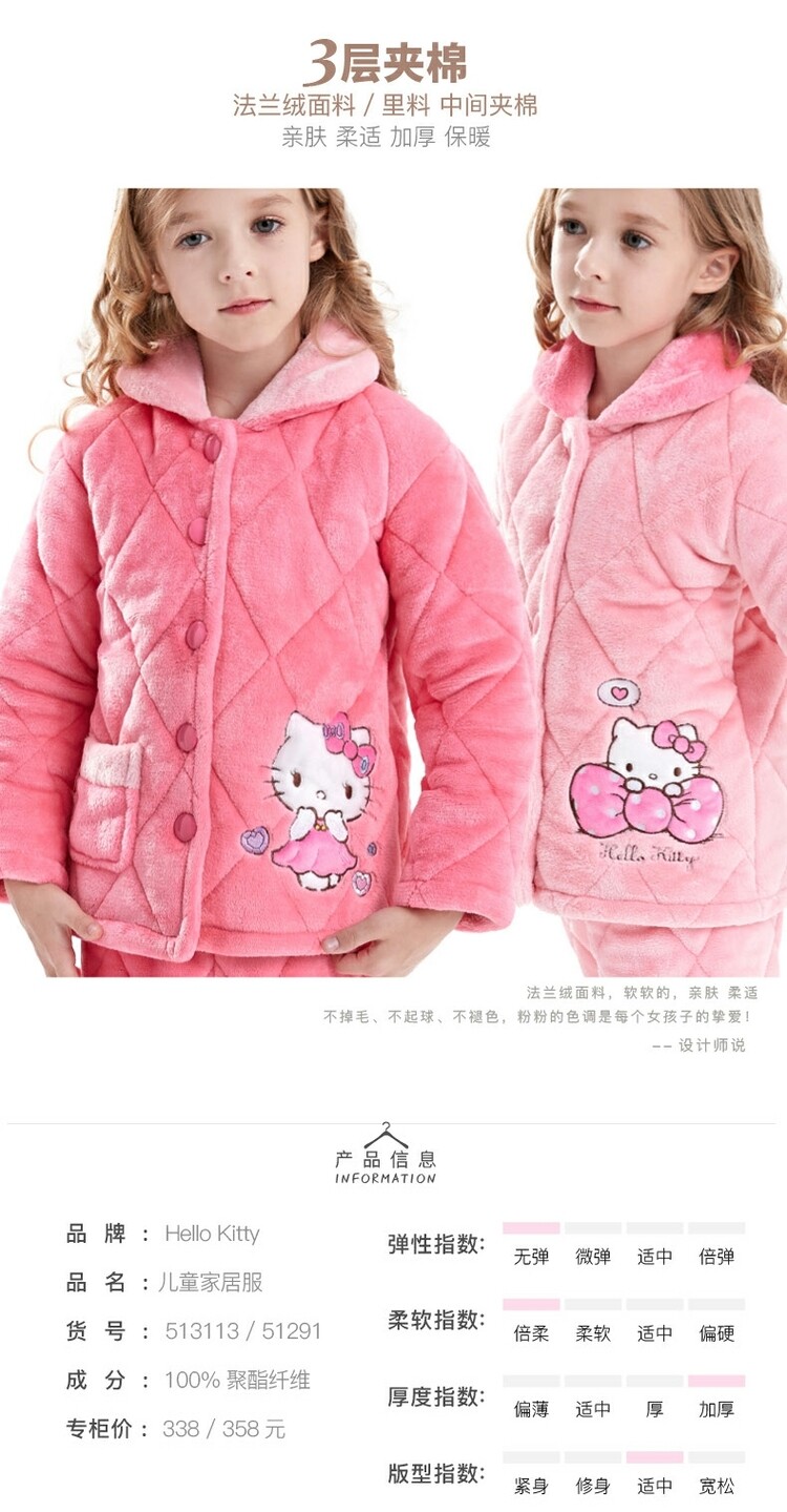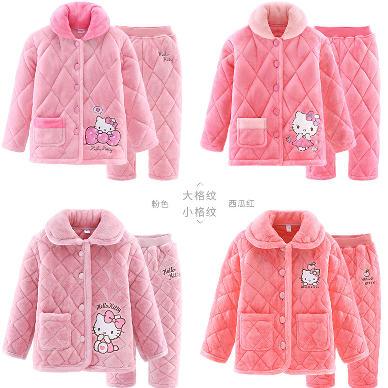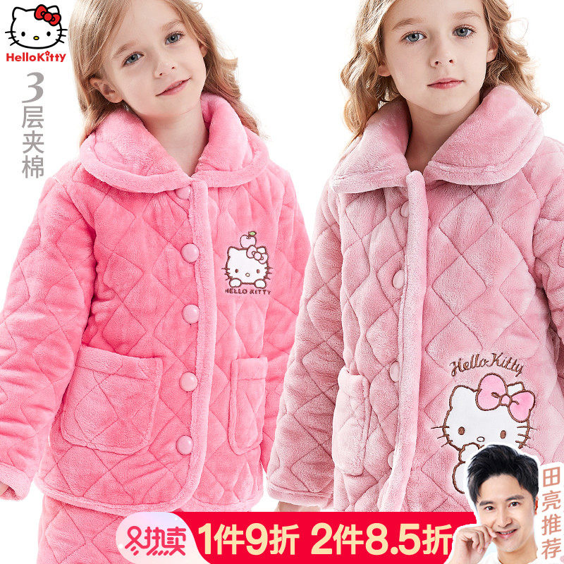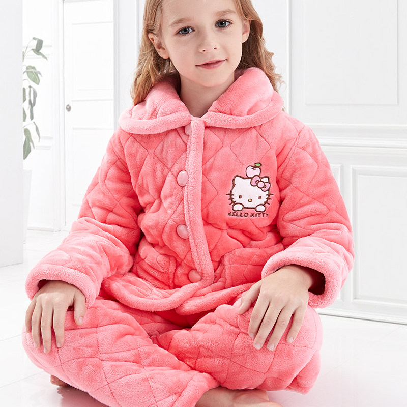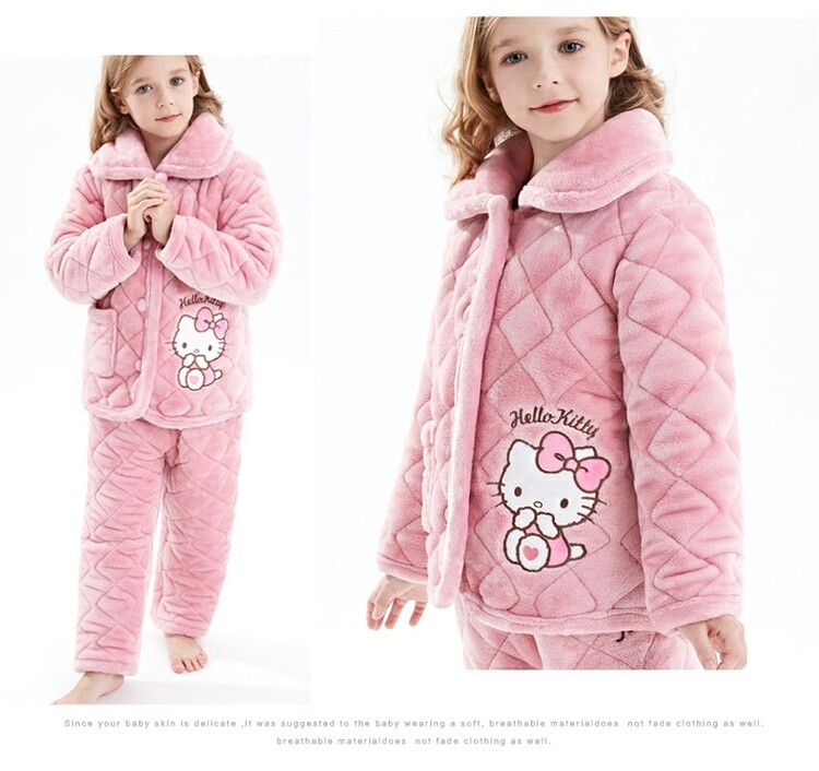 Hello kitty, детская фланелевая пижама, утепленный детский комплект, подходит для подростков