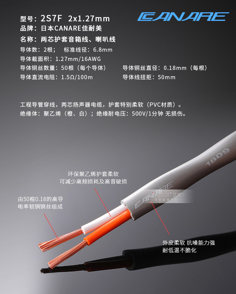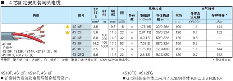 Два линии основных динамиков и кабелей для инженерных каналов особенно мягкие.2S7FG, 2S9FG, 2S11FG, 2S14FG -проводники. Проводники используют кислородную медь (OFC, JIS H3510)