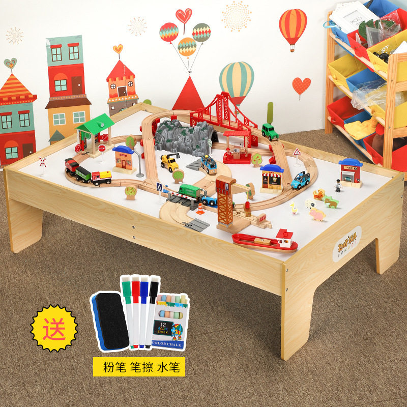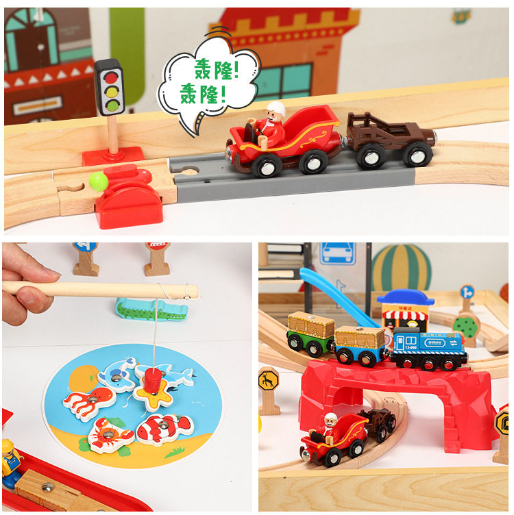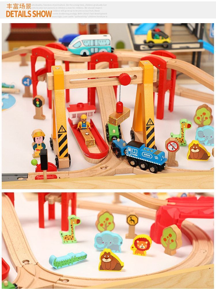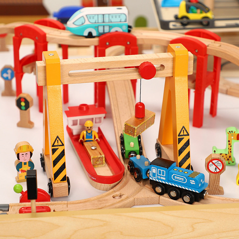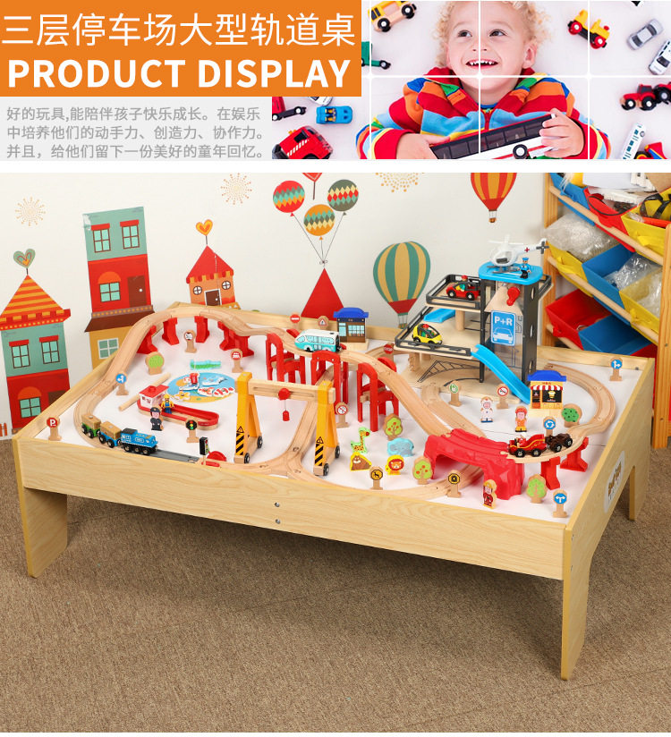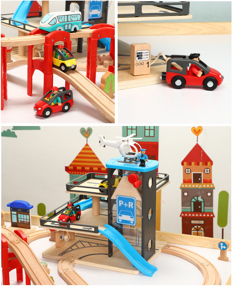Большая парковка с рельсами, деревянная игрушка, поезд, комплект, метро, игрушечная машина