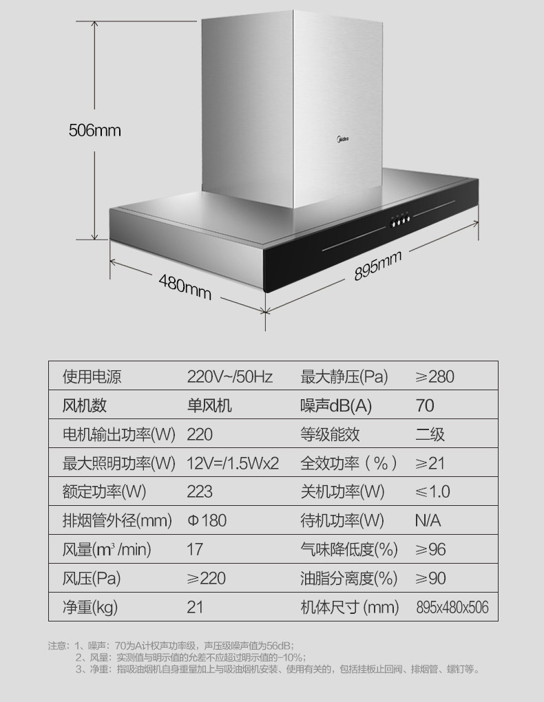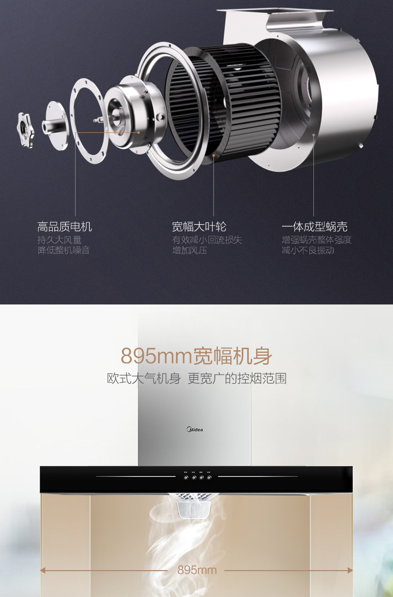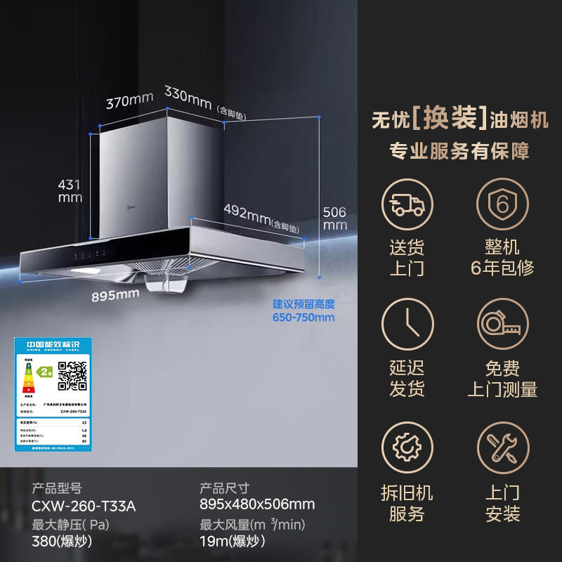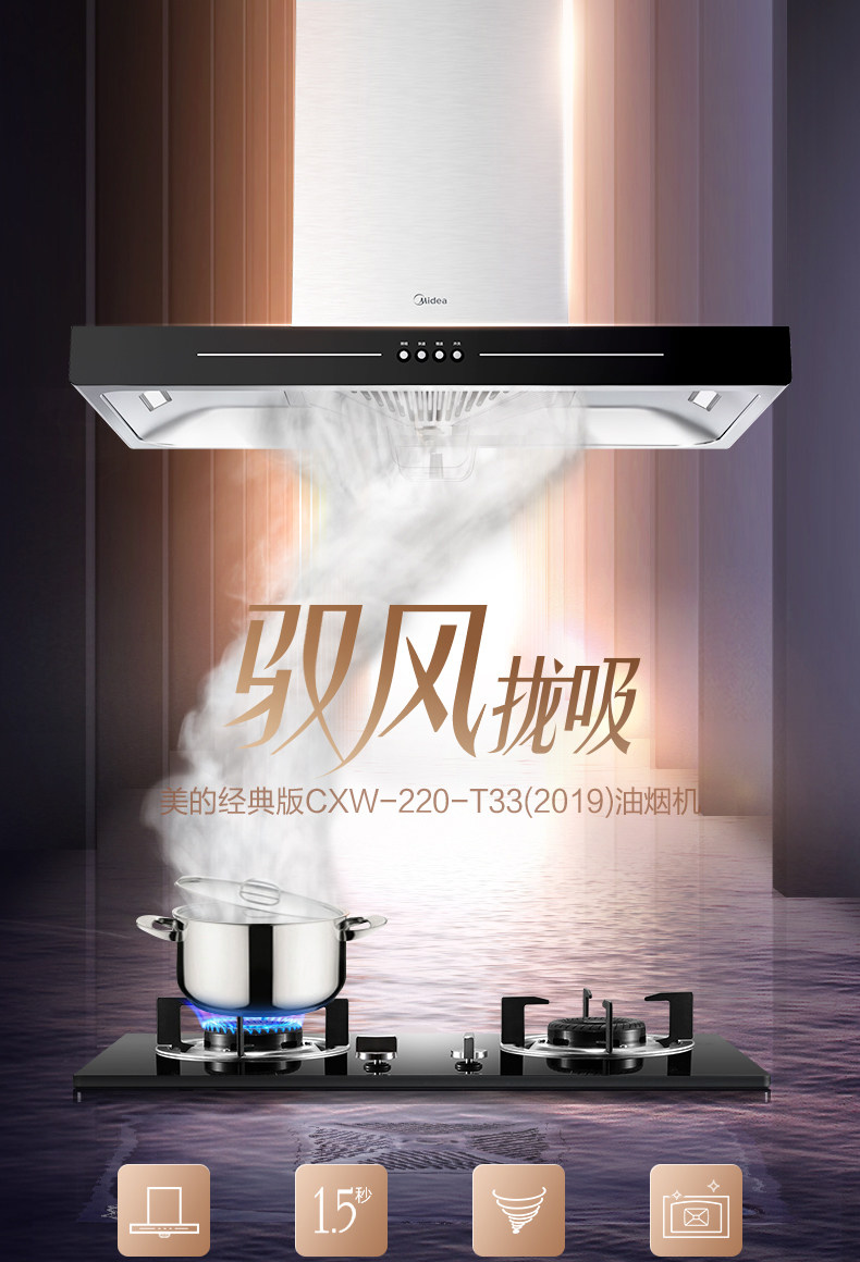 Midea T33A вытяжка капюшона кухня на основе кухни на основе высокого всасывания