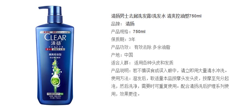 Освежающий шампунь, удаление перхоти, контроль жирного блеска, 750г