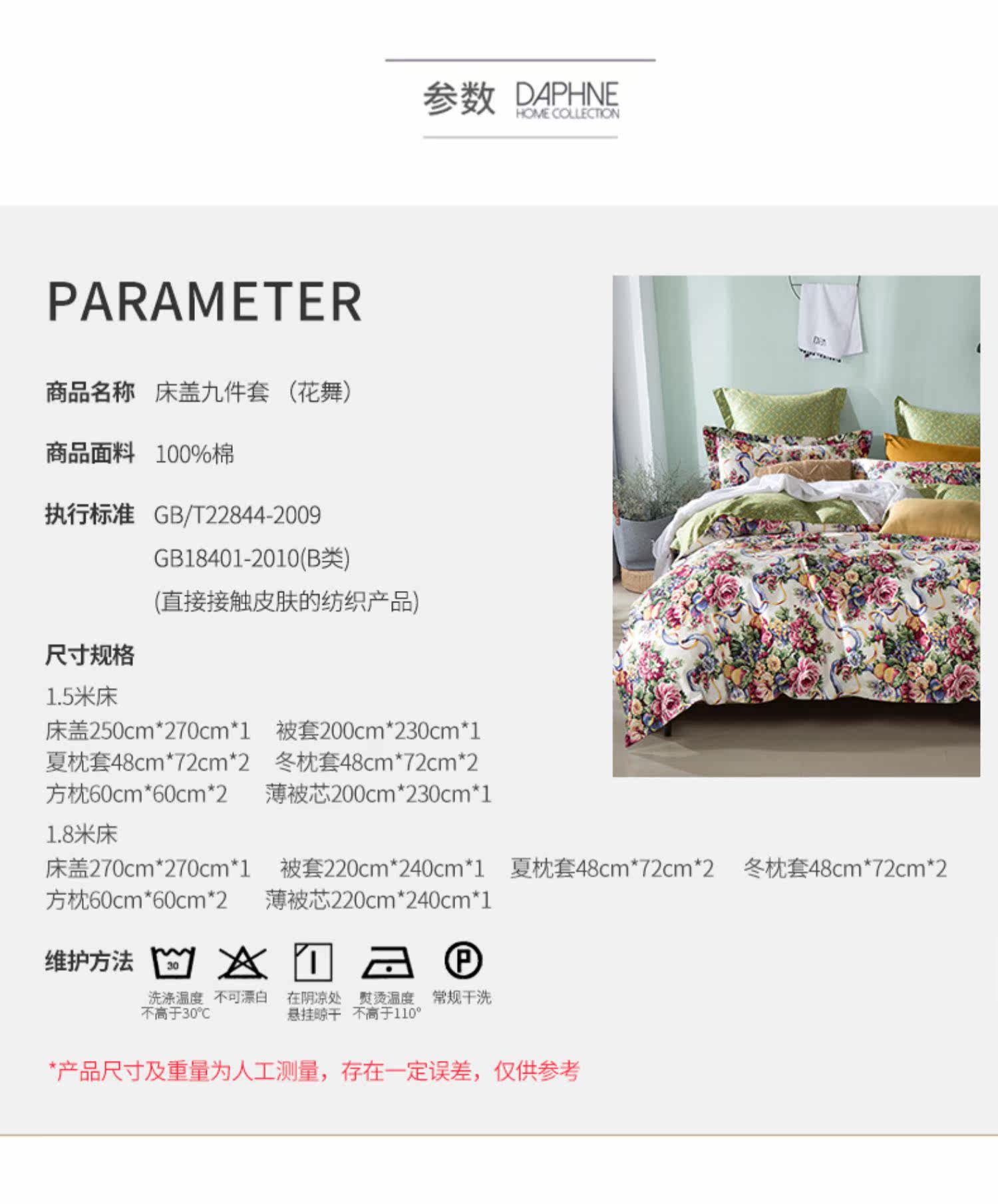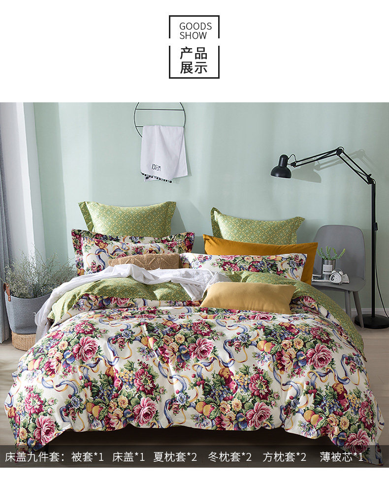 | Ширина кровати: | 1,8-метровая крышка кровати набор девяти частей [применимо к 220*240 стеганому ядро] |